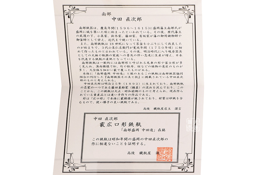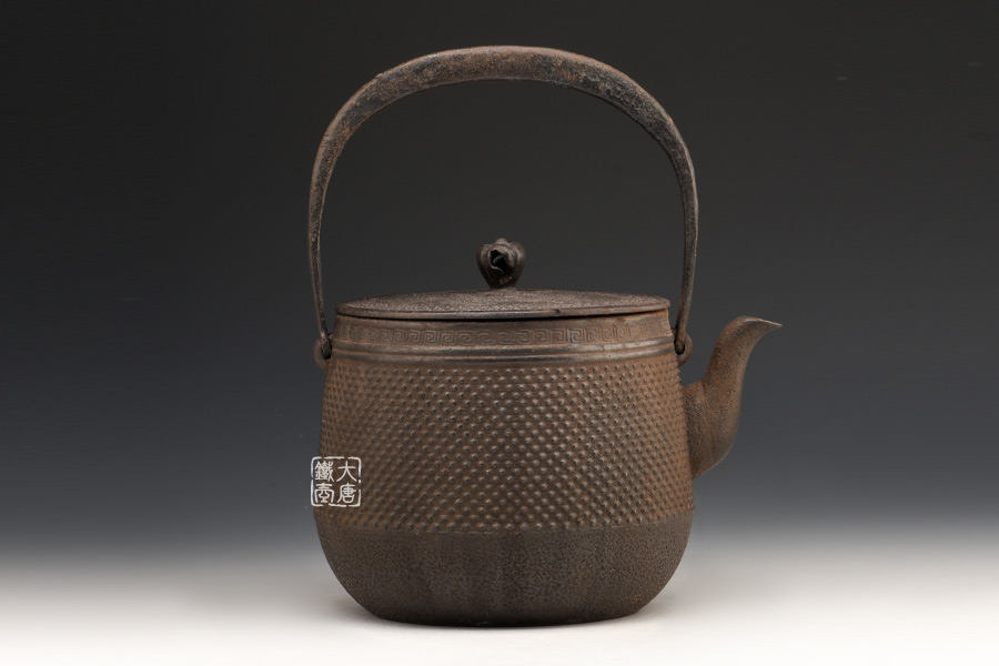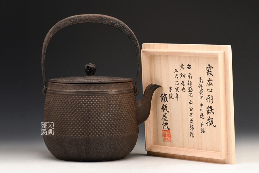 中田直次郎 廣口形霰紋老鐵壺 [ 編號:77519 ]