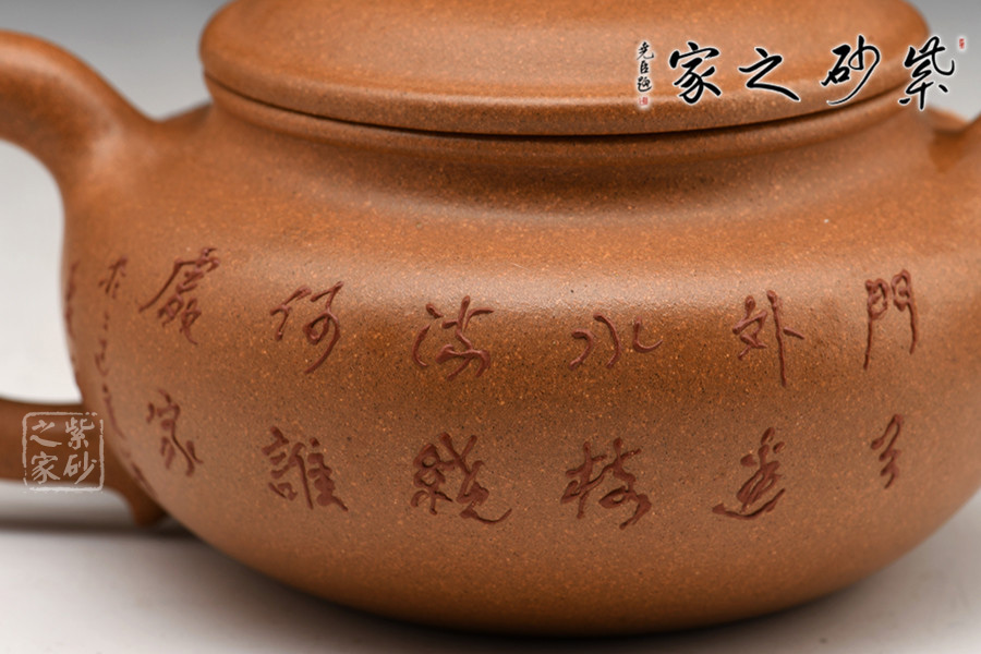 這款仿古壺,壺蓋與口沿子母線吻合嚴密,合成圓線飽滿,扁鈕有力,一彎流胥出自然;圓圈把勻勢而起,富于靈動,整體骨肉亭勻,收展有度,有一氣呵成之暢。
