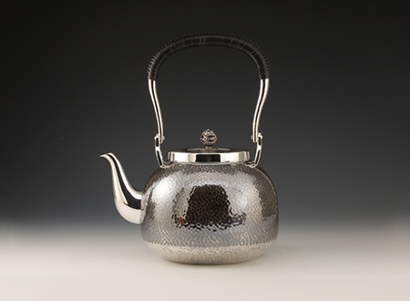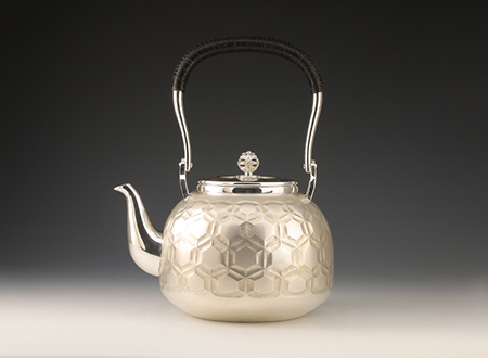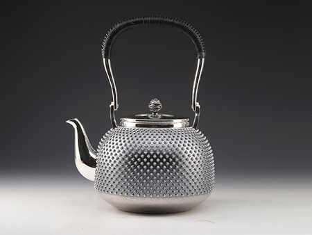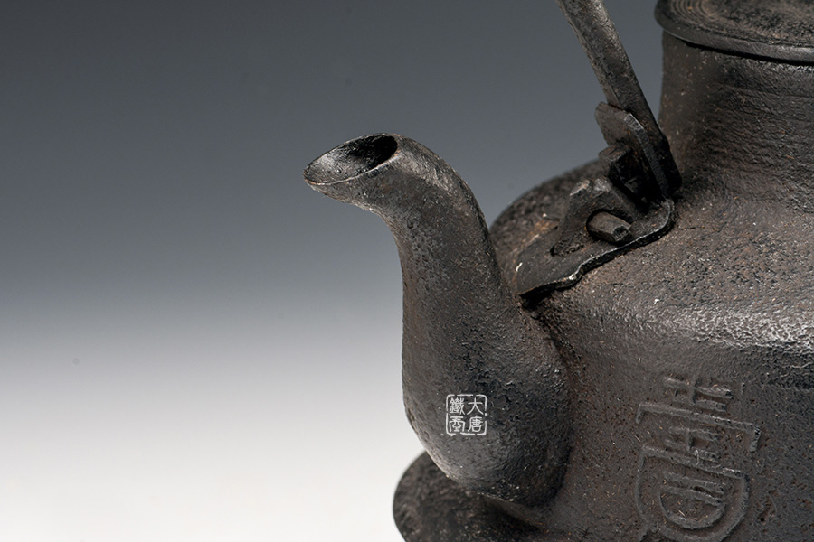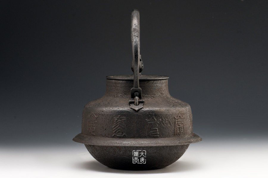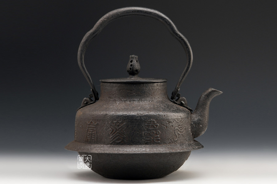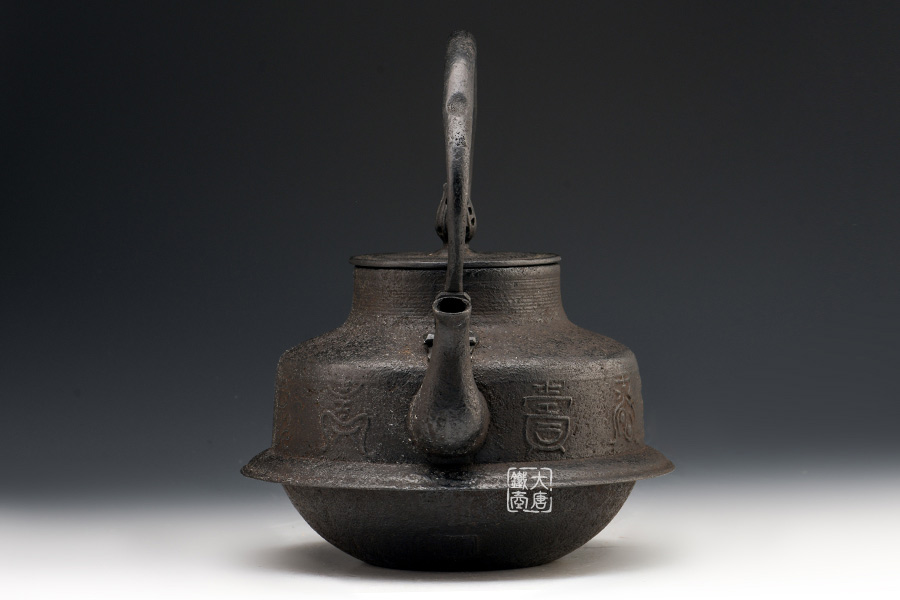虎山工房創(chuàng)立于1955年,位于盛岡市手作村,是日本南部鐵器中的重要代表?!被⑸健敝从诔醮獛熜芄绕郊某錾厥且郧澳喜糠曫B(yǎng)老虎的地方,故取“虎山”作為工房的名字。熊谷平吉擅長(zhǎng)印刻湯釜和鐵瓶上的圖案,制作的鐵器帶有濃厚的藝術(shù)氣息,被視為鐵和火融合于一身的茶道藝術(shù)品?;⑸焦し恐谱鞯蔫F瓶,主要以砂模澆鑄的方法為主,但是改進(jìn)了木質(zhì)刮板的制模技術(shù),從而得以制作出多邊形的鐵器,在南部鐵器中獨(dú)樹(shù)一幟。