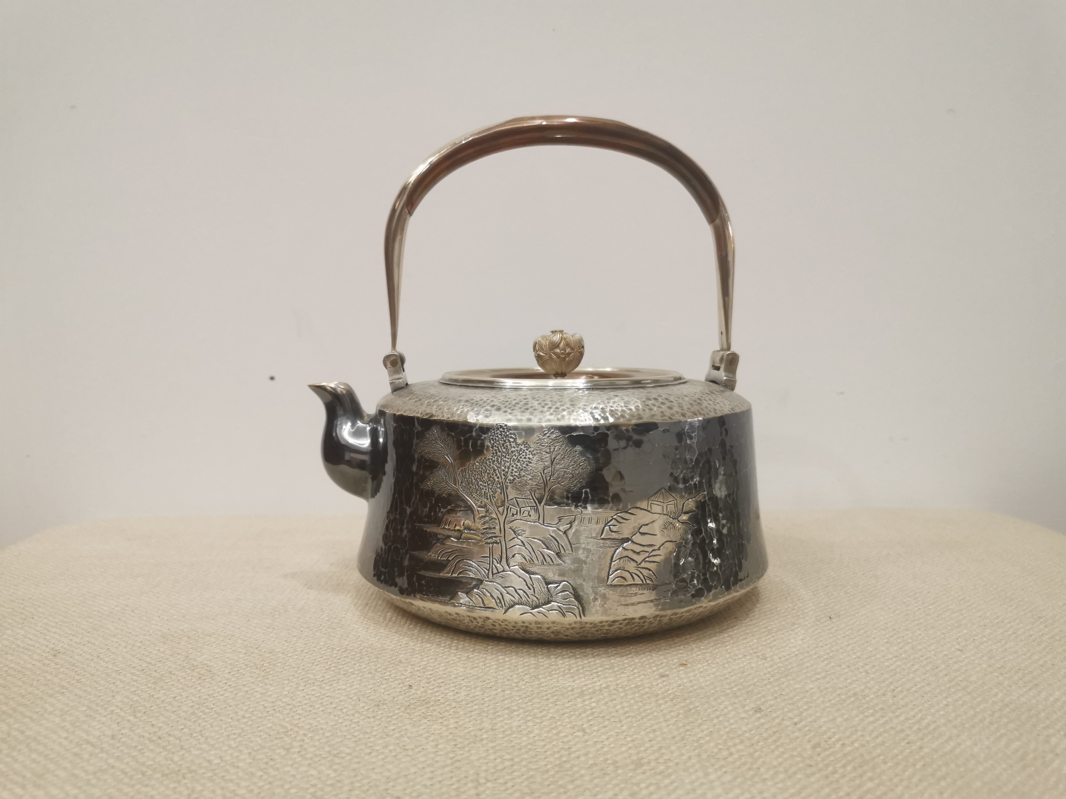 銀壺的制作是段六一對小爐匠傳統(tǒng)的傳承,也是金屬工藝的集大成。一張打、片打出等技術(shù),鏨刻、雕花、成形等工藝看似簡單,實則需要深厚的工藝基礎(chǔ)。銀板多半毫則太后,銀板少半毫則太薄。收口不到位則銀壺出水不流暢,鏨刻少了藝術(shù)功底則暗淡無光。從佛像到佛塔,從藏刀到到壁畫,段六一40年來對工藝的苛求最終在銀壺上得以集合。正是由于工藝的繁復(fù)和精準(zhǔn),手工藝人們才說“做好了銀壺,才是一個合格的手藝人”。