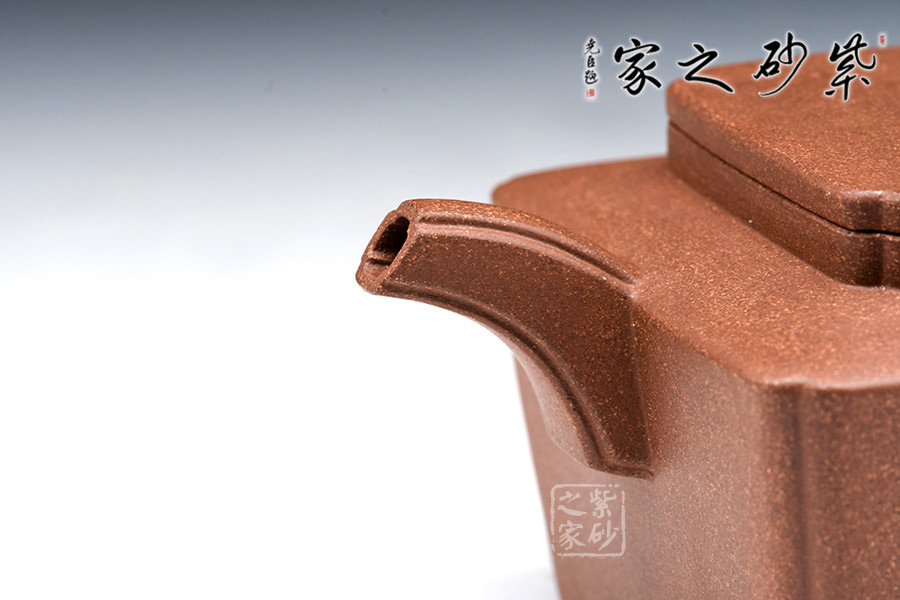 該款鳴遠(yuǎn)四方壺,形體優(yōu)美,工藝嚴(yán)謹(jǐn),氣韻生動(dòng),造型古樸,技法獨(dú)特。整體壺行透露出豪爽、剛勁、正直的陽剛之氣;比例準(zhǔn)確,口蓋緊密平整,塊面挺括,線條利落,氣勢(shì)挺拔,力度到位。作品展示