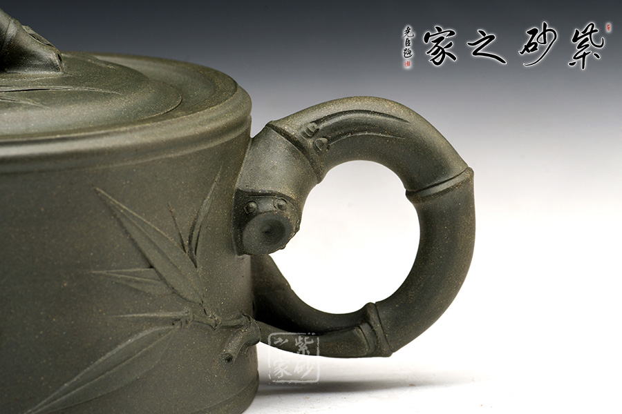 整器縱觀之,神韻生動(dòng)。老師以極高的技藝和脫俗的心態(tài)詮釋了那竹高風(fēng)亮節(jié)的風(fēng)骨和挺拔不羈的品格,在賞壺者品味紫砂之中更添一份超然幽靜之趣。