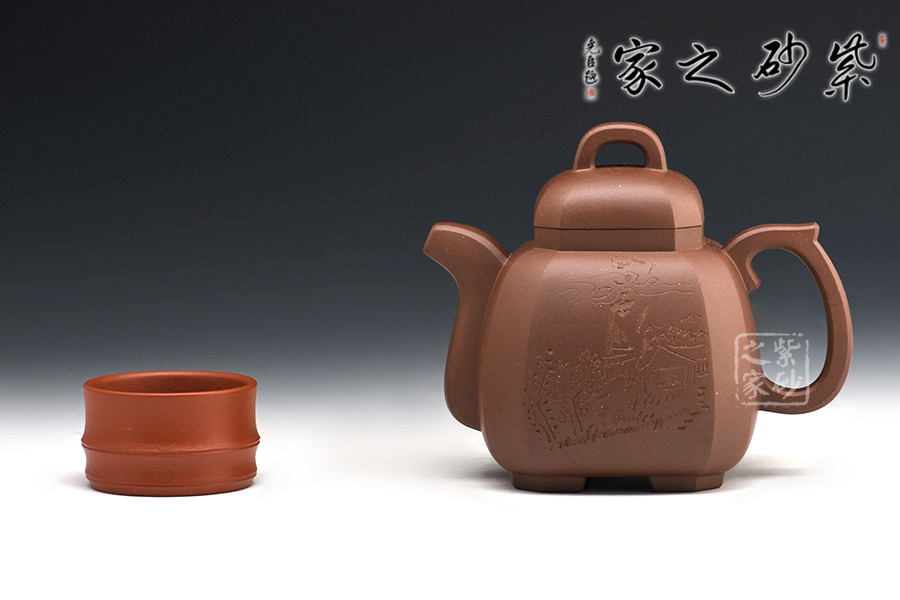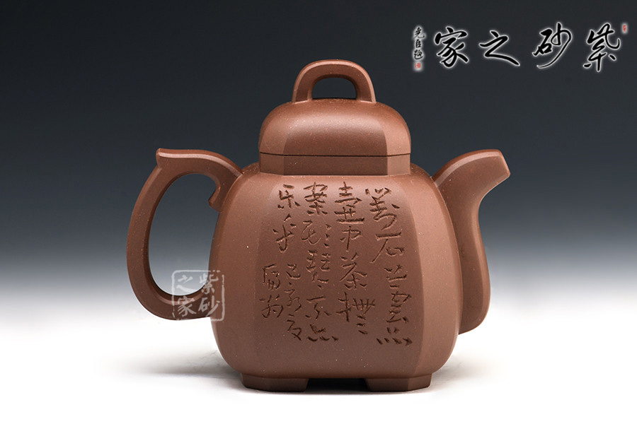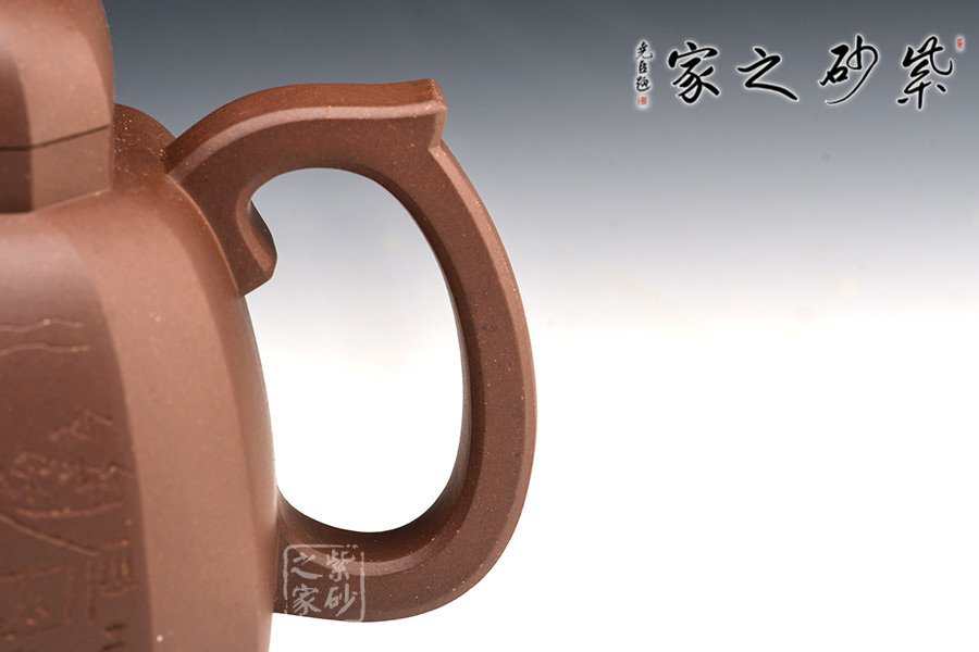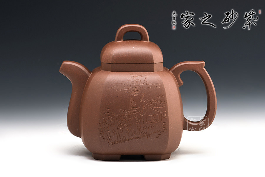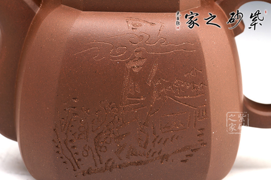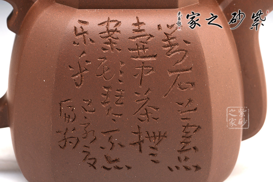 光貨離不開裝飾。俗話說“壺隨字貴,字隨壺傳”:光壺不刻字,就是一把光壺;壺上面刻了大師、名人的字,一把壺的含金量就高了,收藏價值就更高,升值潛力就更大。王福君與中國工藝美術(shù)大師譚泉海合作最多,其次是徐安碧、鮑志強(qiáng)、毛國強(qiáng)(均為中國工藝美術(shù)大師、中國陶瓷藝術(shù)大師)。