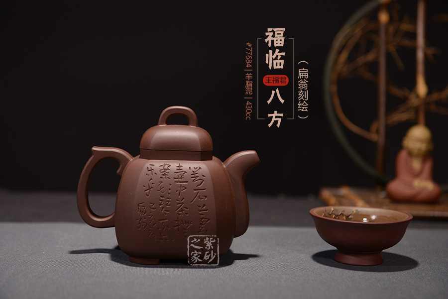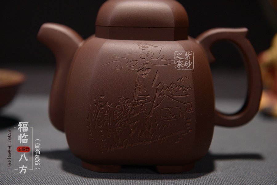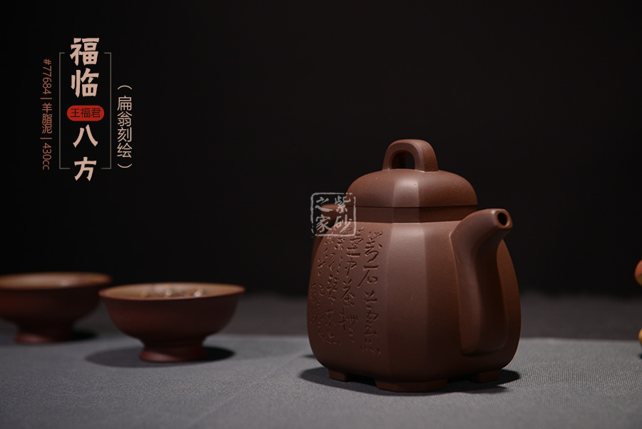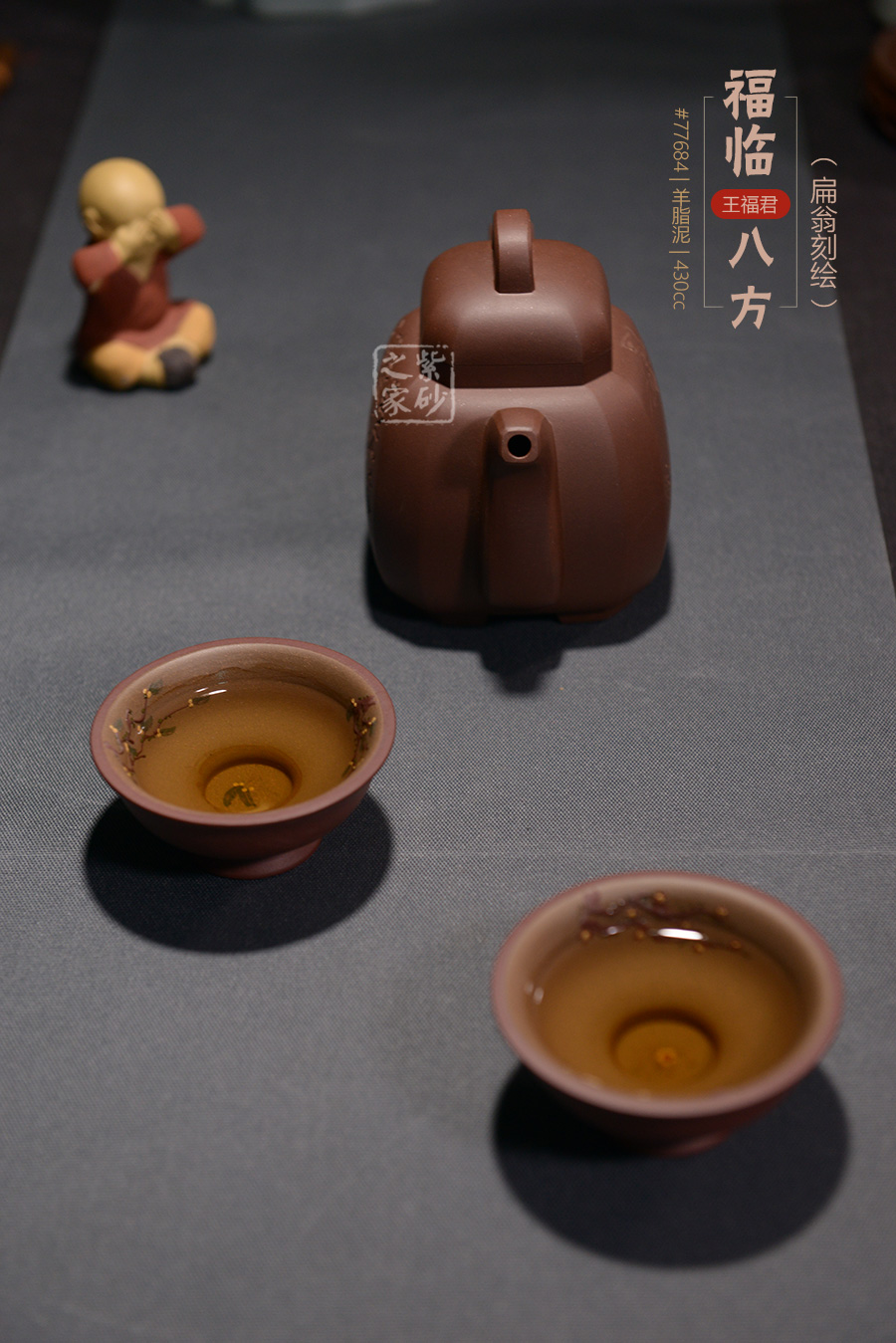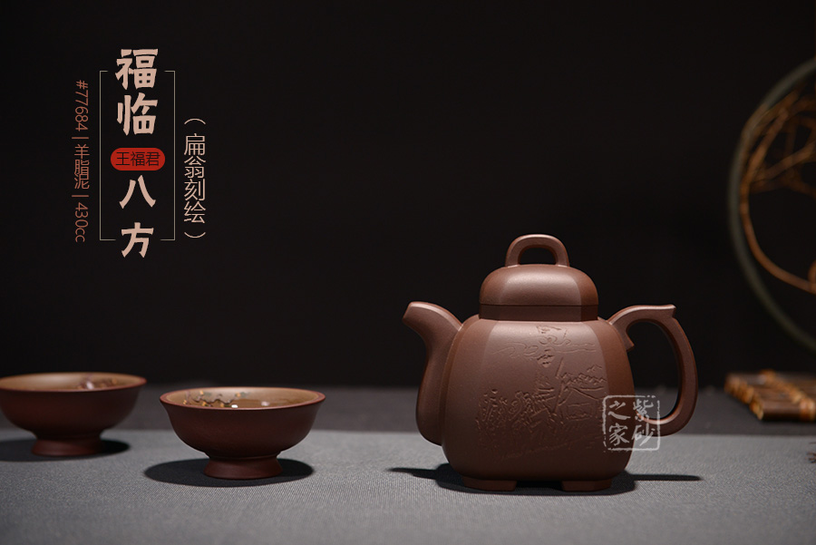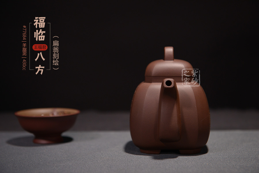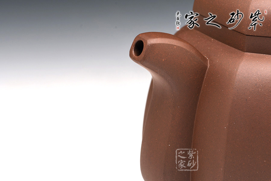 此壺爽凈精當(dāng),通體以“八”意呈現(xiàn),壺身以八個面圍成,成型難度升級,線條自壺蓋延伸至壺底,流暢自然,規(guī)矩有度。壺嘴、壺把線條呼應(yīng),順暢美觀。福臨八方簡潔明快,整器透出一股浩然正氣,八方線條上下延綿,有八方來福之意,賦予吉祥美好的意愿。