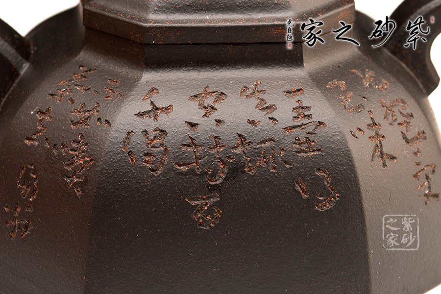 “福緣八方”棱角分明,觀感穩(wěn)重有力。雖為方器,但方中寓圓,剛器作柔,圓潤(rùn)自然。整壺平分八面,規(guī)整之中顯精巧,寓意八方來(lái)福,廣納福緣。
