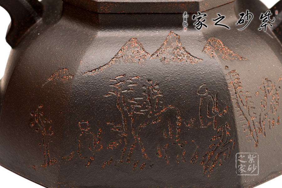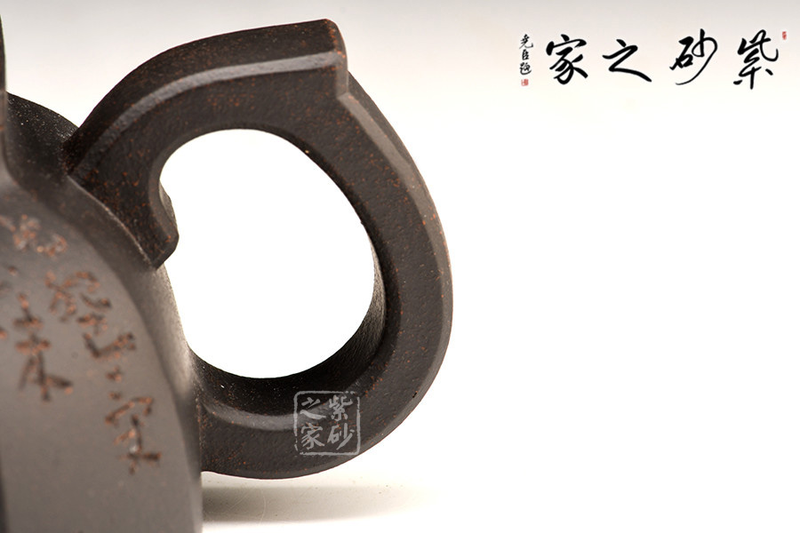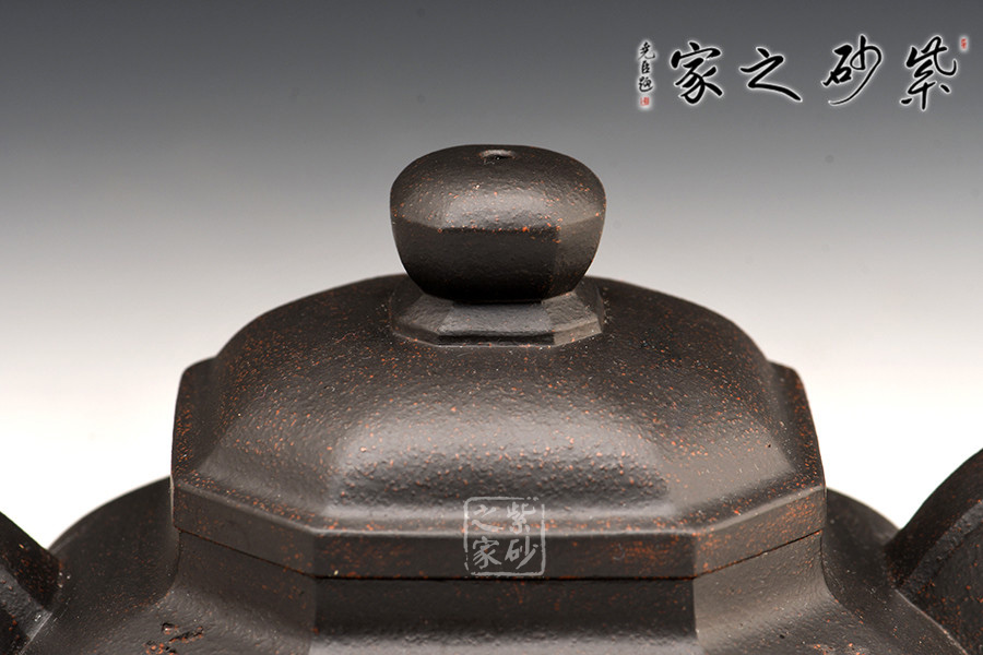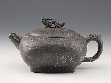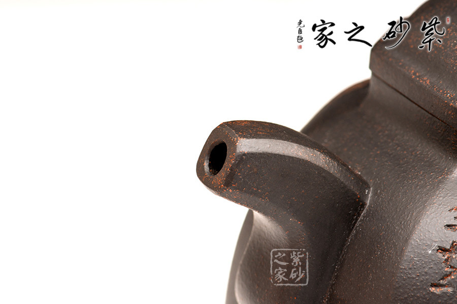 黑金砂是紫泥中的精品,經(jīng)高溫?zé)珊髩厣硗w烏黑油亮,隱隱泛著紅色的顆粒有如亞金一樣,極其容易泡養(yǎng)。