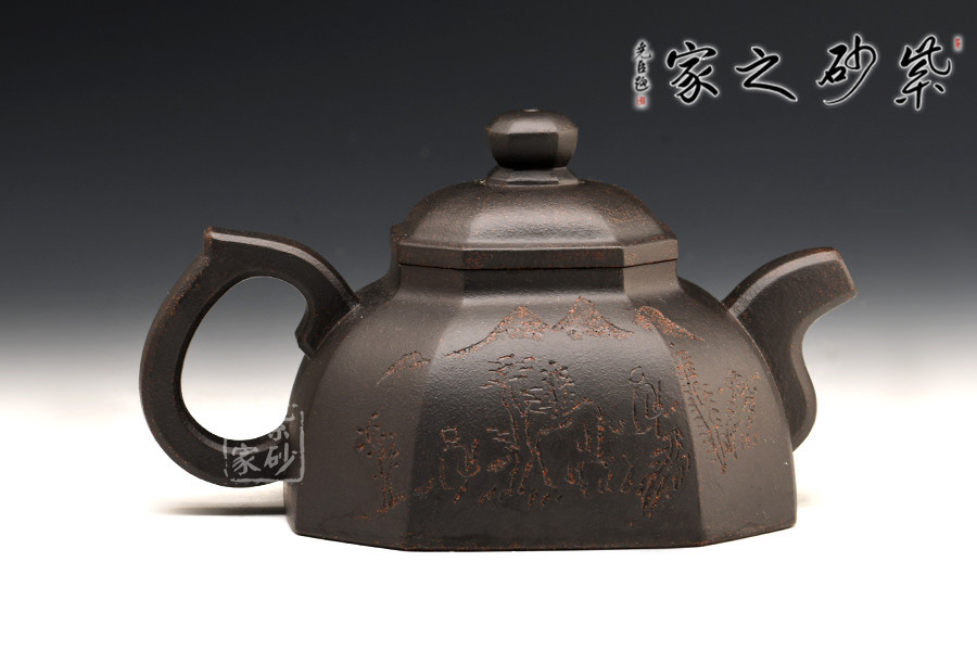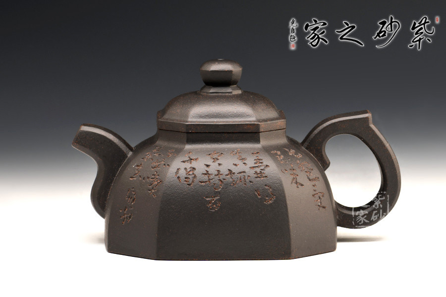 黑金砂是紫泥里的一種,原礦里含錳高,含鐵紅粉豐富,所以經(jīng)過(guò)高溫?zé)珊髩厣硗w烏黑油亮隱隱泛著紅色的顆粒有如亞金一樣,故稱黑金砂,泥料含有朱砂,段泥砂的屬性,容易泡養(yǎng)。黑金砂紫泥中的精品