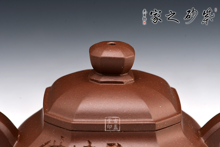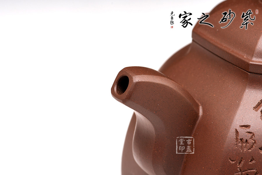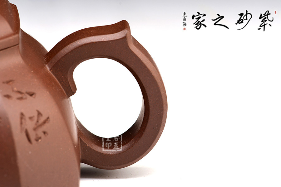 “福緣八方”棱角分明,觀感穩(wěn)重有力。雖為方器,但方中寓圓,剛器作柔,圓潤自然。整壺平分八面,規(guī)整之中顯精巧,寓意八方來福,廣納福緣。