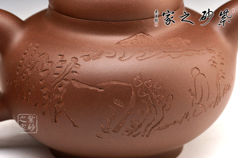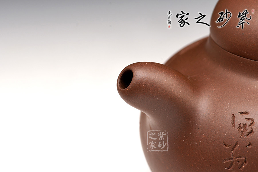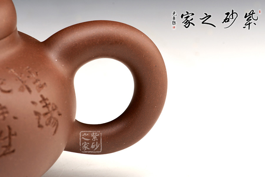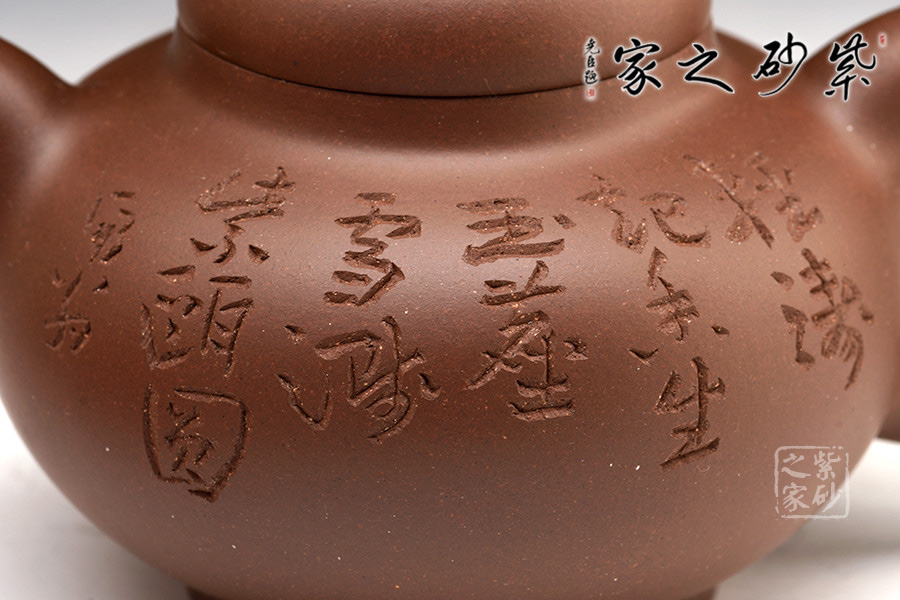 光貨離不開裝飾。俗話說“壺隨字貴,字隨壺傳”:光壺不刻字,就是一把光壺;壺上面刻了大師、名人的字,一把壺的含金量就高了,收藏價(jià)值就更高,升值潛力就更大。王福君與中國工藝美術(shù)大師譚泉海合作最多,其次是徐安碧、鮑志強(qiáng)、毛國強(qiáng)(均為中國工藝美術(shù)大師、中國陶瓷藝術(shù)大師)。