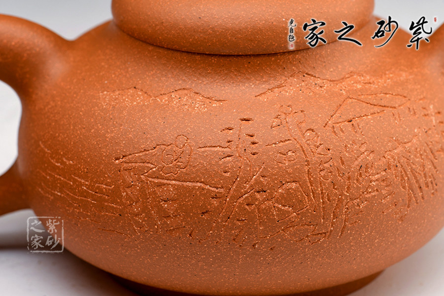 光貨離不開裝飾。俗話說“壺隨字貴,字隨壺傳”:光壺不刻字,就是一把光壺;壺上面刻了大師、名人的字,一把壺的含金量就高了,收藏價值就更高,升值潛力就更大。王福君與中國工藝美術(shù)大師譚泉海合作最多,其次是徐安碧、鮑志強、毛國強(均為中國工藝美術(shù)大師、中國陶瓷藝術(shù)大師)。
