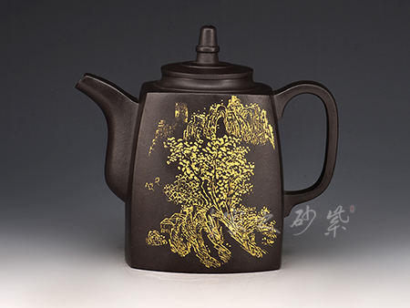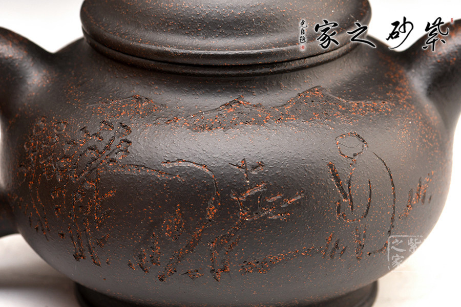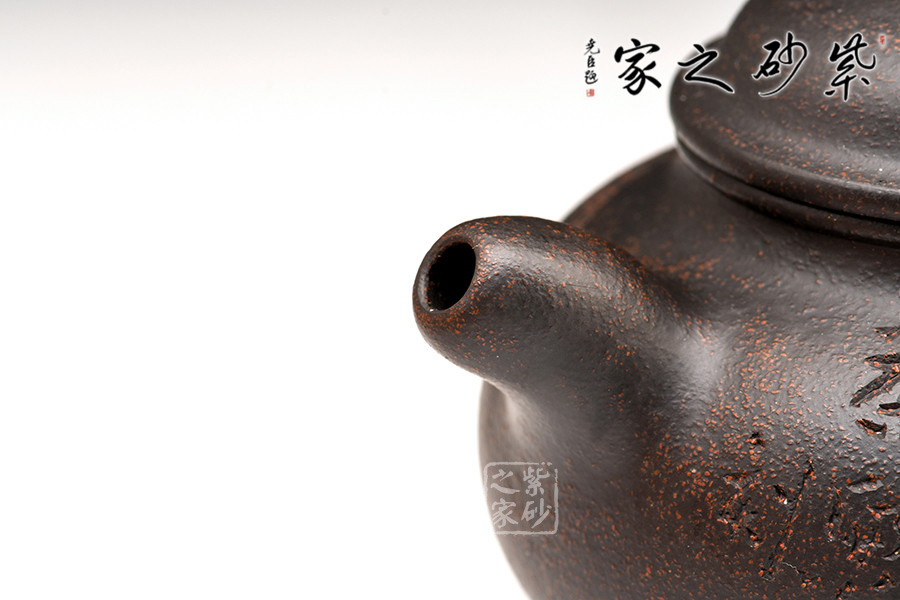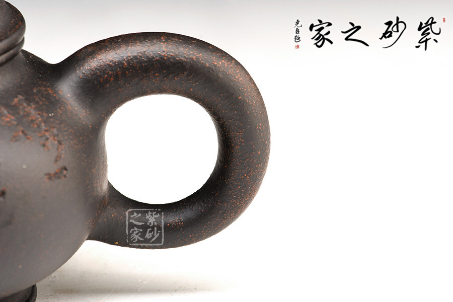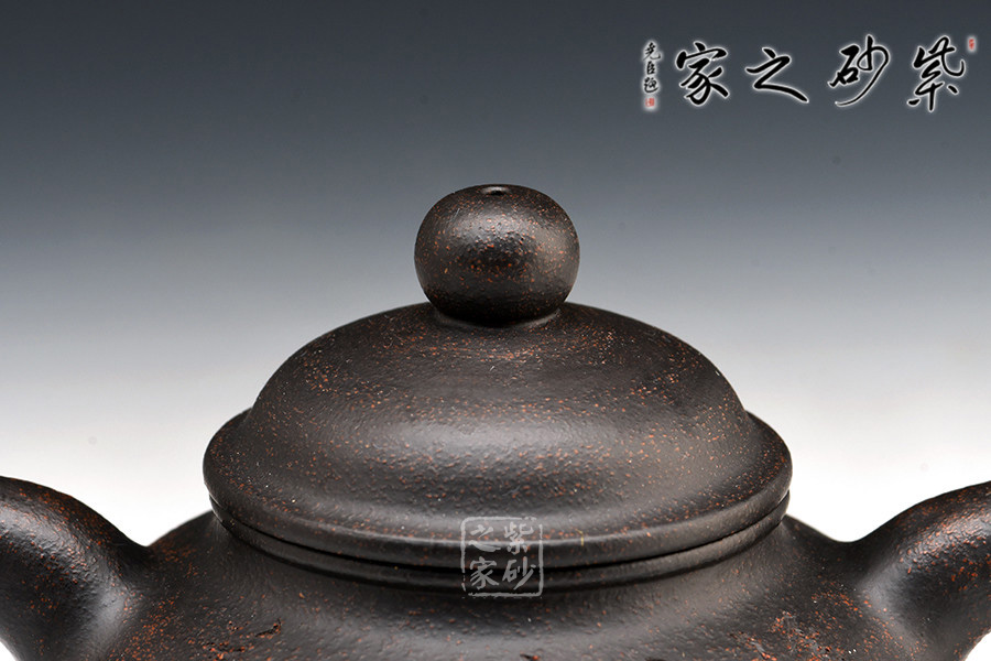 黑金砂是紫泥中的精品,經(jīng)高溫?zé)珊髩厣硗w烏黑油亮,隱隱泛著紅色的顆粒有如亞金一樣,極其容易泡養(yǎng)。