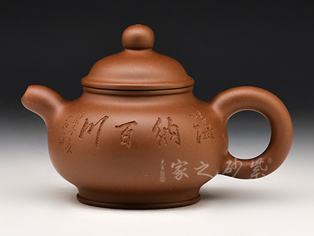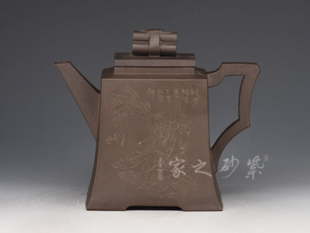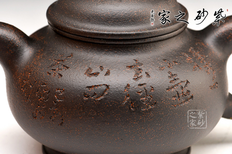 光貨離不開裝飾。俗話說“壺隨字貴,字隨壺傳”:光壺不刻字,就是一把光壺;壺上面刻了大師、名人的字,一把壺的含金量就高了,收藏價(jià)值就更高,升值潛力就更大。王福君與中國工藝美術(shù)大師譚泉海合作最多,其次是徐安碧、鮑志強(qiáng)、毛國強(qiáng)(均為中國工藝美術(shù)大師、中國陶瓷藝術(shù)大師)。