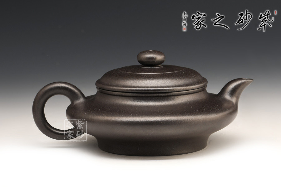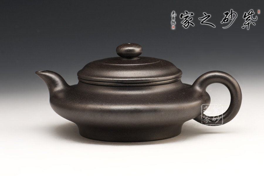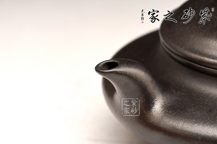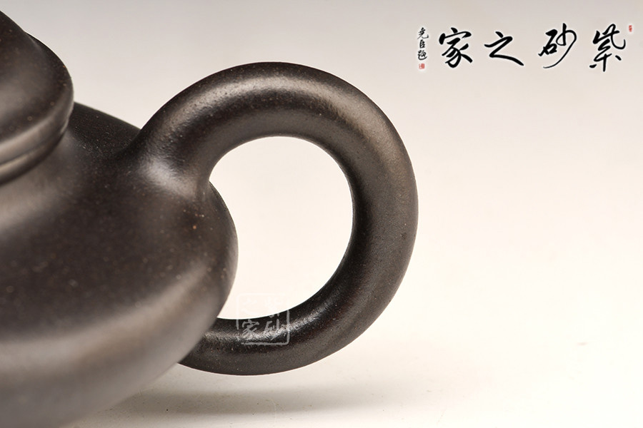 此壺雖是紫砂泥料制成,卻重如鑌鐵,色如玄鐵,感覺(jué)上更像一把“鐵壺”。