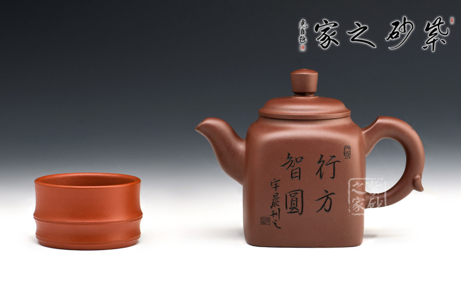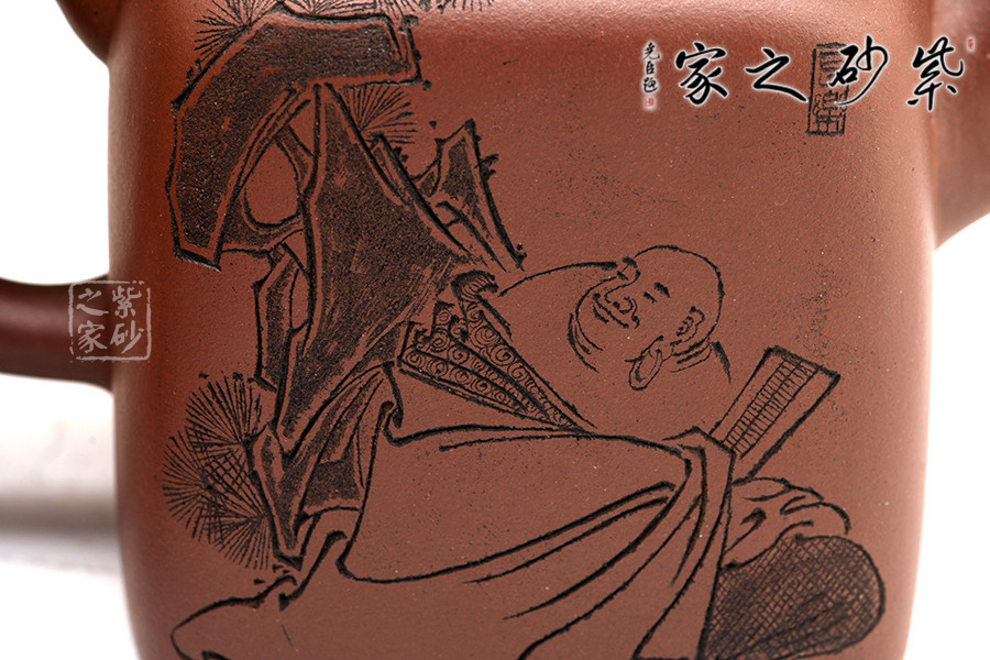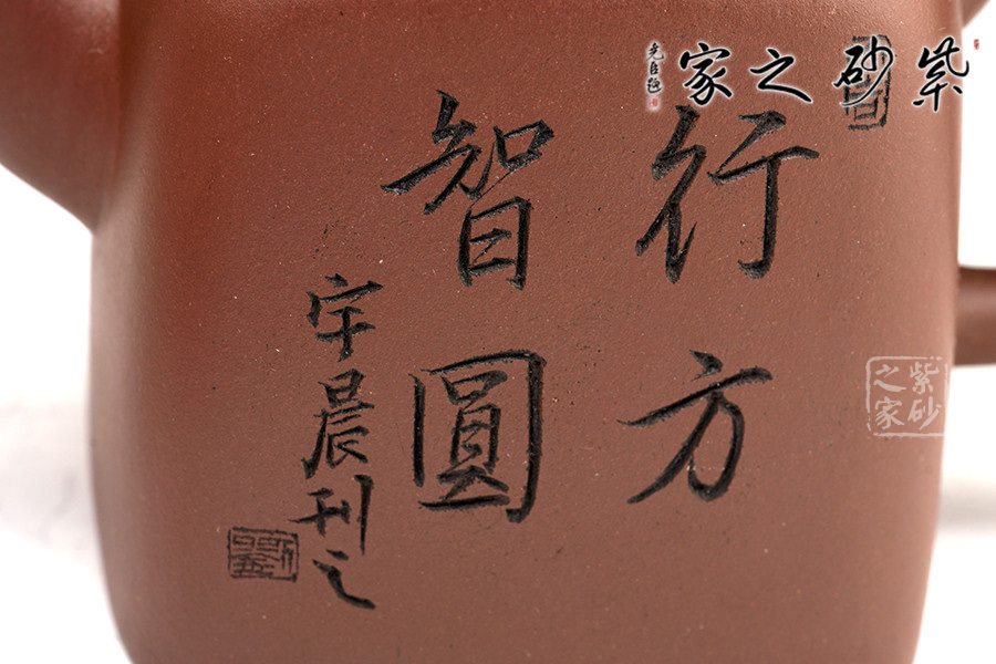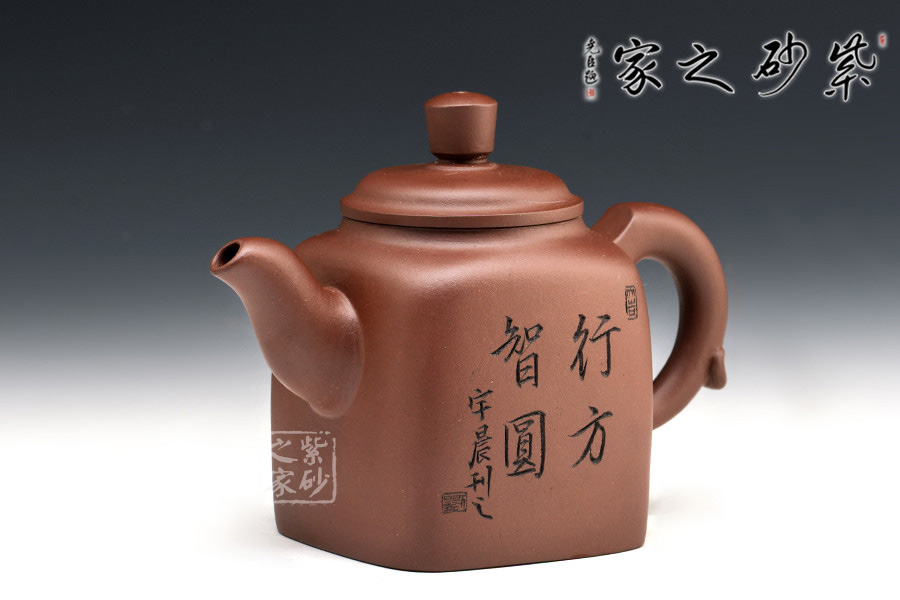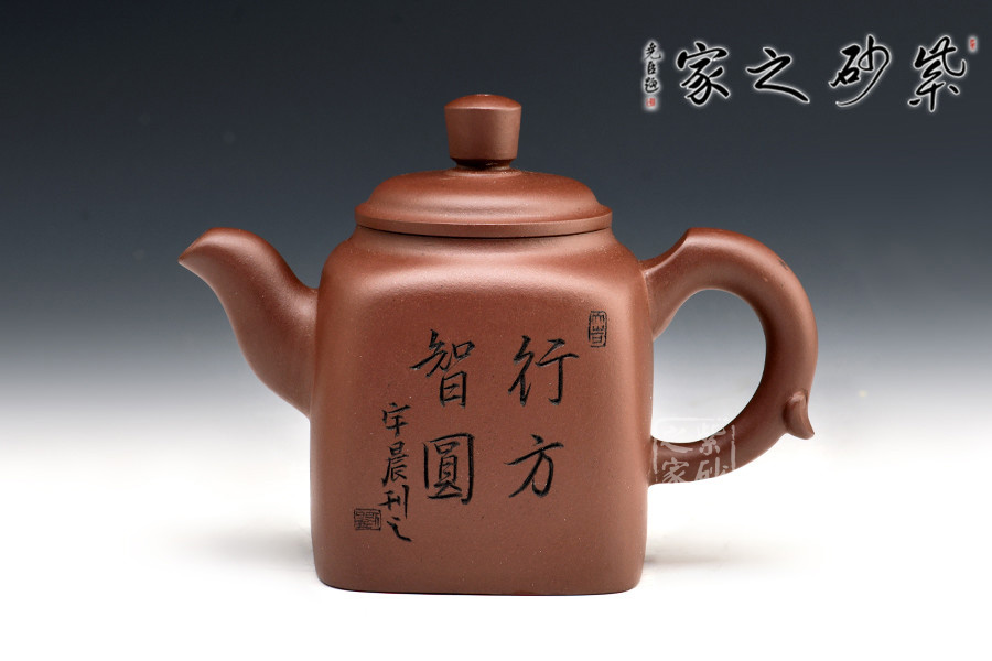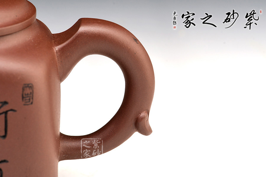 高身四方體,但是所有塊面轉(zhuǎn)折都略顯收斂,將直線與弧線巧妙結(jié)合,使之方中帶圓,創(chuàng)造了優(yōu)雅而悅目的造型。壺把設(shè)計(jì)巧妙,藝術(shù)感強(qiáng)烈,更重要的是端握起來更加舒適方便,茗壺整體透出靈秀之氣。