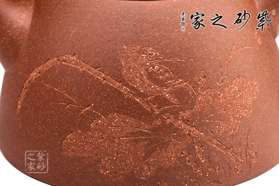特點(diǎn):塊狀中有青綠色的"雞眼"、"貓眼"、色呈偏紫泛青,細(xì)而純正, 十分稀少.燒成的壺呈現(xiàn) 紅豬肝色,燒成顏色具體要看礦料的成分構(gòu)成和燒成溫度。