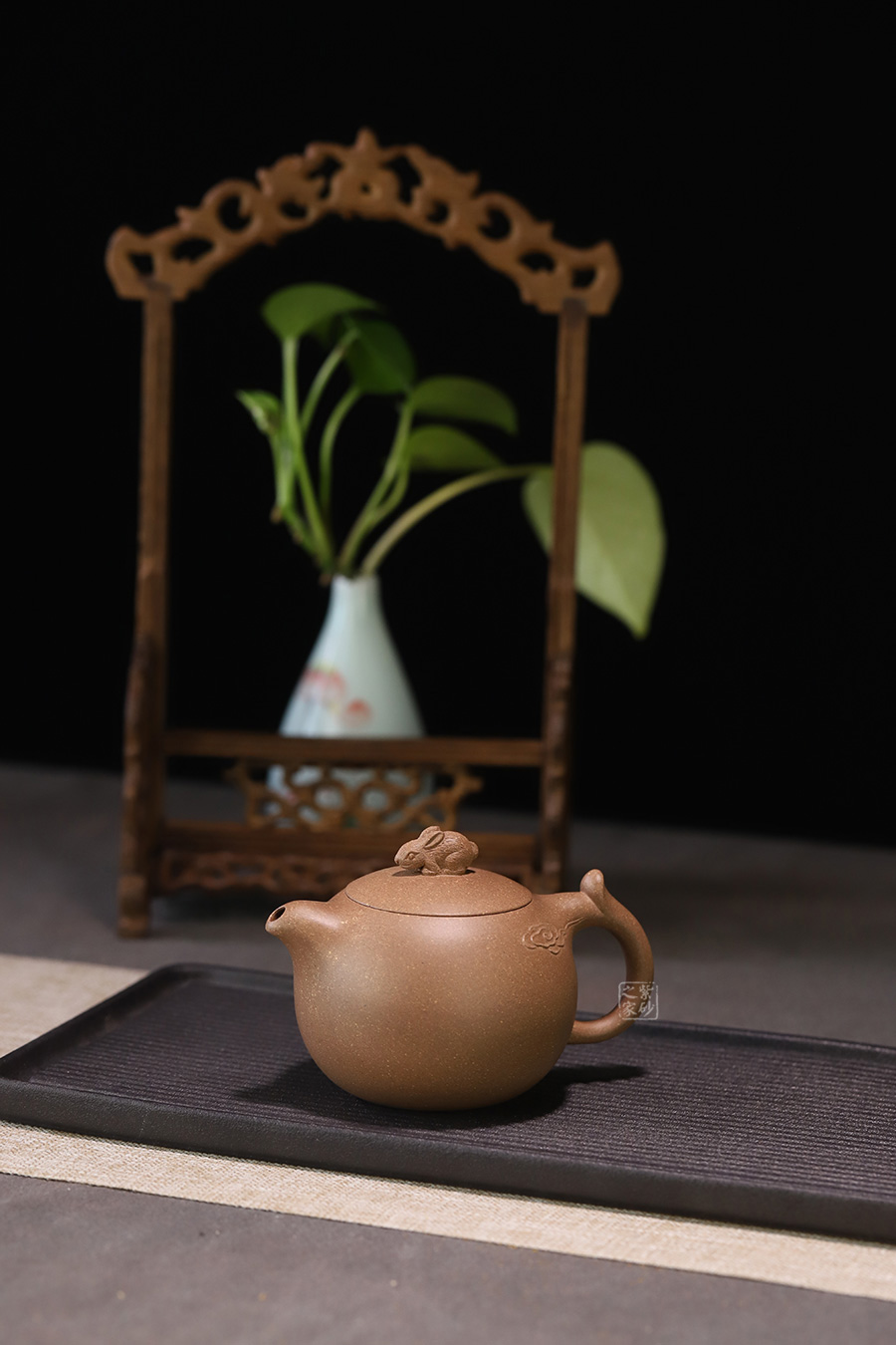 泥性:感甜嫩綿密,質(zhì)堅(jiān)而溫潤(rùn),呈近田黃色調(diào),為江蘇宜興趙莊山系朱泥礦~黃石黃之共生礦,經(jīng)挑揀練製而成,因含鐵量只達(dá)6%左右,致陶之后呈“金田黃色”。
