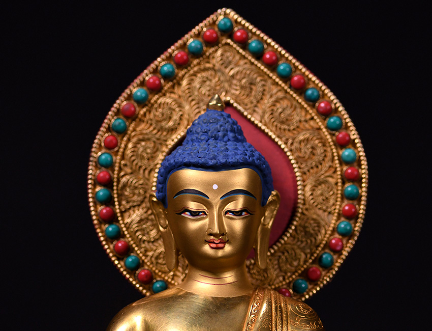 | 唐卡“師傅”開臉,筆路穩重流暢。體現完美天人相,可見佛菩薩慈眉善目,賦予唐卡畫像生的靈氣。 | 細節決定品質,點睛之筆不到位影響整體美觀,五官比例不協調,面目呆板,缺乏靈氣。 |