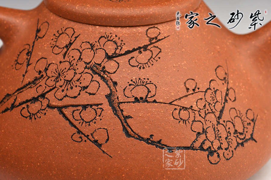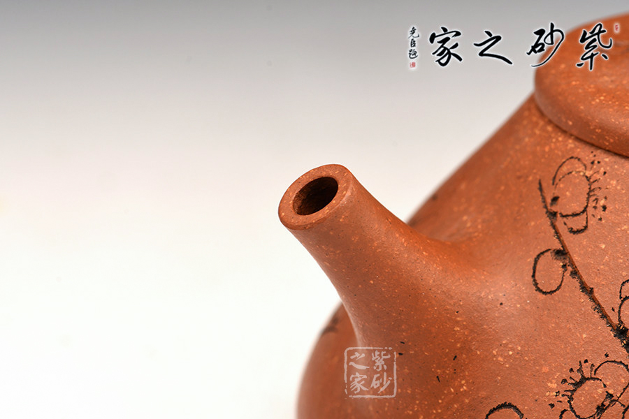 泥性:原礦因含緞泥、紅泥、紫泥等諸多共生礦,陶之后,于深沉之“橙紅色”底上,滿佈五彩斑斕的粗細(xì)、深淺之紅、黃星斑點(diǎn)。