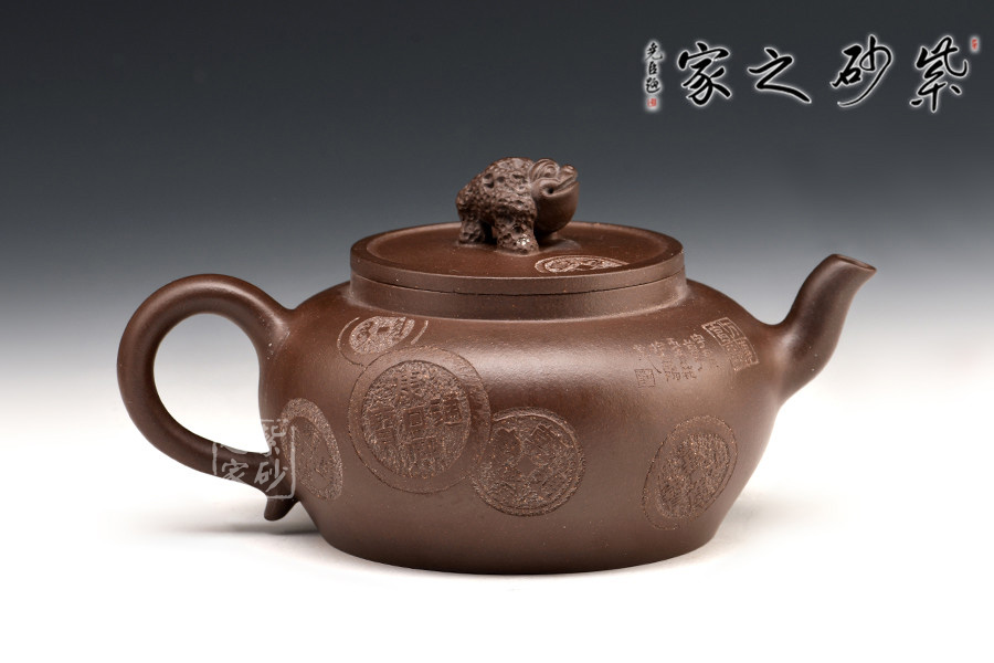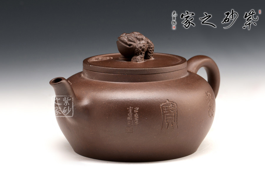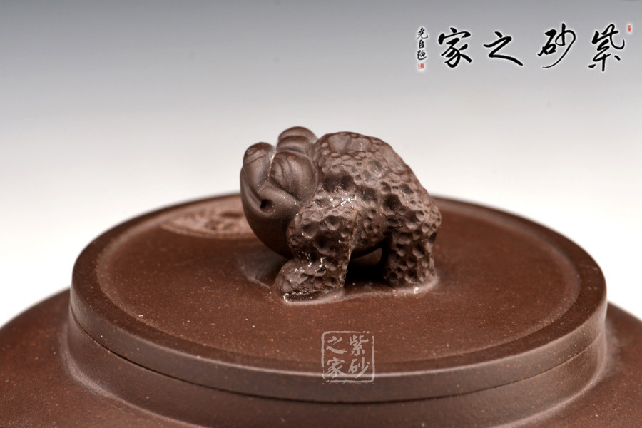 蟾蜍作壺鈕,中國(guó)傳統(tǒng)文化中,做生意的人們店內(nèi)擺放蟾蜍,有吸財(cái)、吐財(cái)、聚財(cái)、鎮(zhèn)財(cái)?shù)淖饔谩?/p>