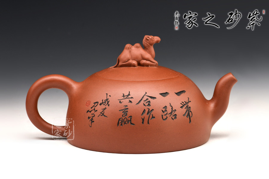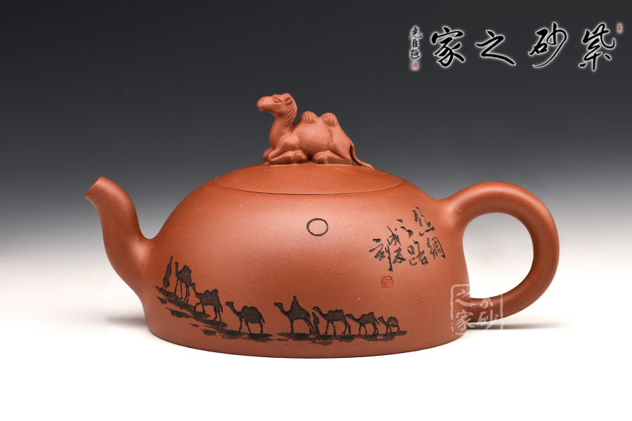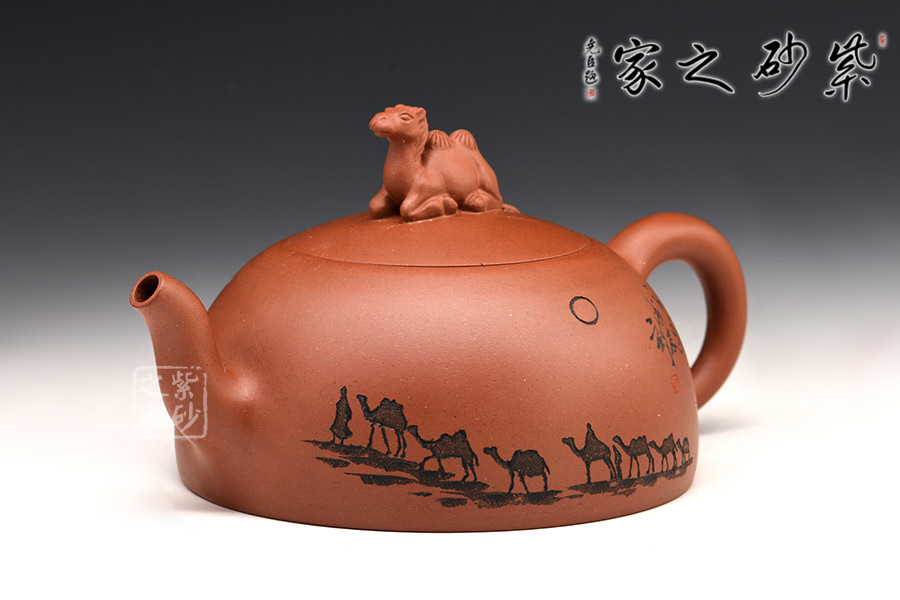 絲綢之路壺,壺身為半球型,陸上絲綢之路起于中國西安,經(jīng)中亞、西亞,連接地中海各國的陸上通道,橫跨半個(gè)地球;壺鈕選用駱駝造型,為古絲綢之路的主要交通工具。