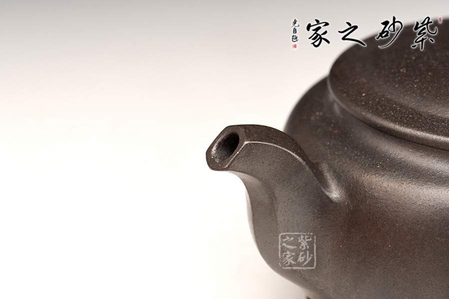 此壺雖是紫砂泥料制成,卻重如鑌鐵,色如玄鐵,感覺上更像一把“鐵壺”。