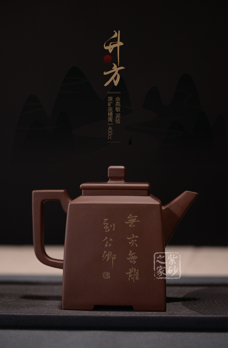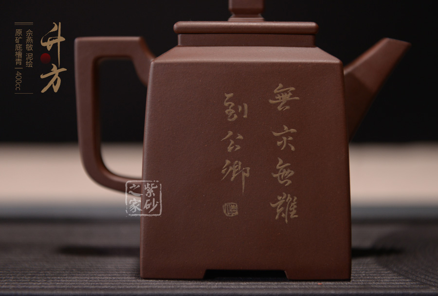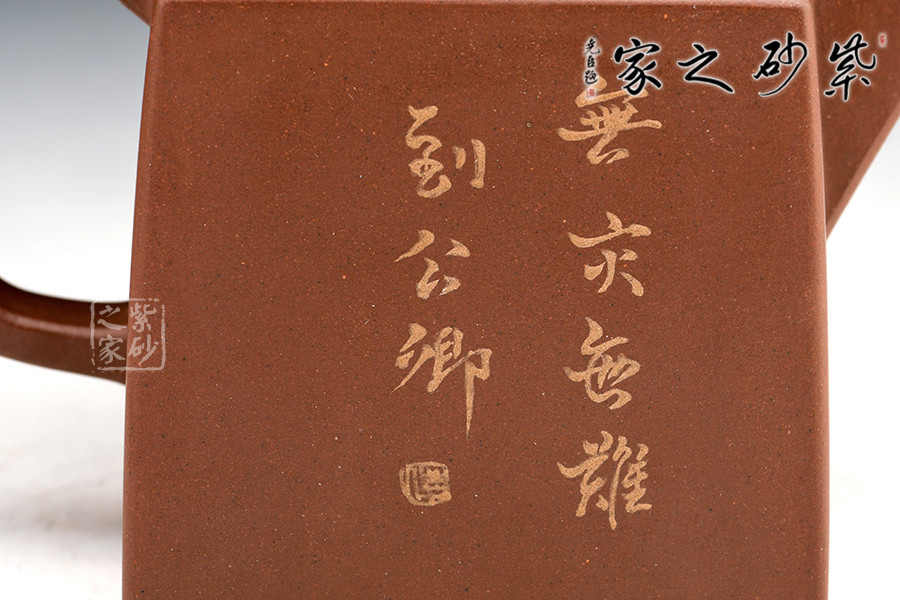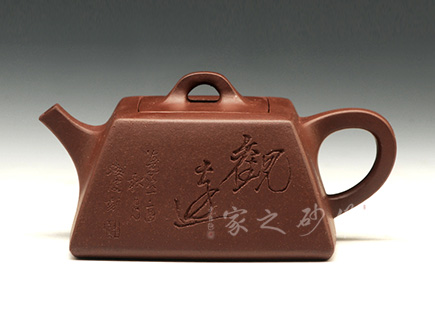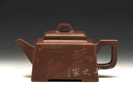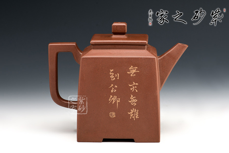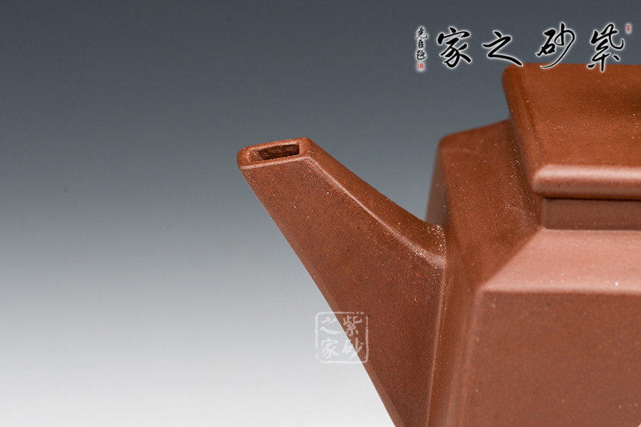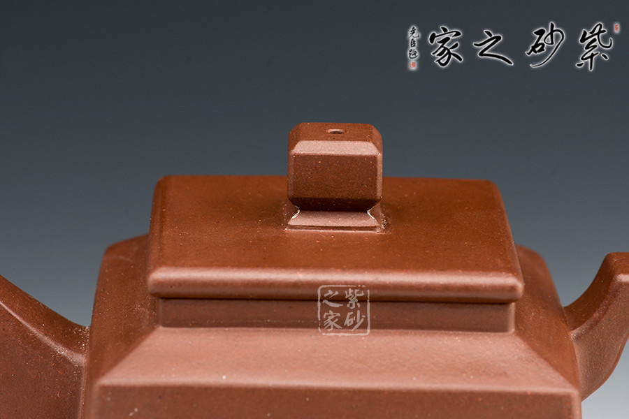 壺體長方狀,其流、把、蓋、鈕呈方形,線條硬朗,流嘴與折把剛直猶勁,器表干凈利索。