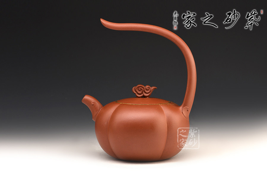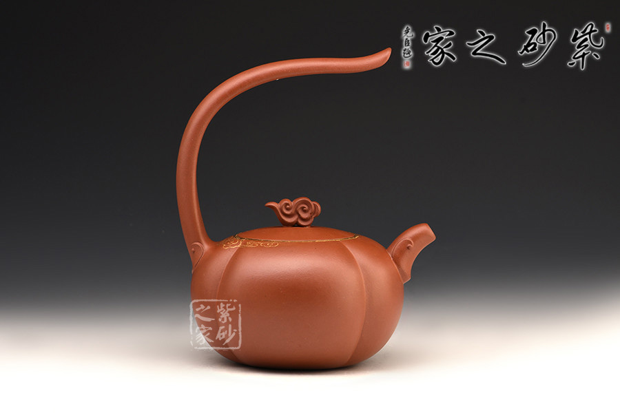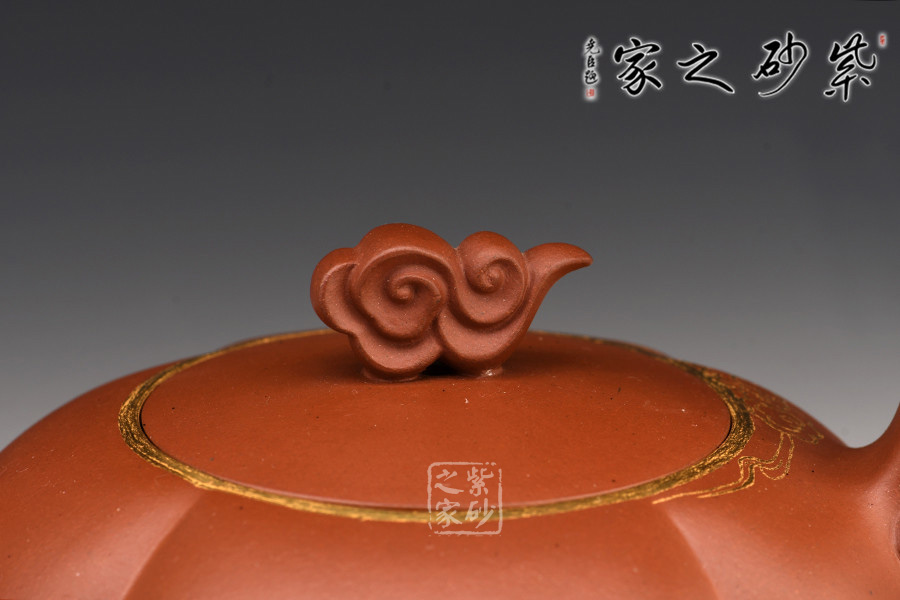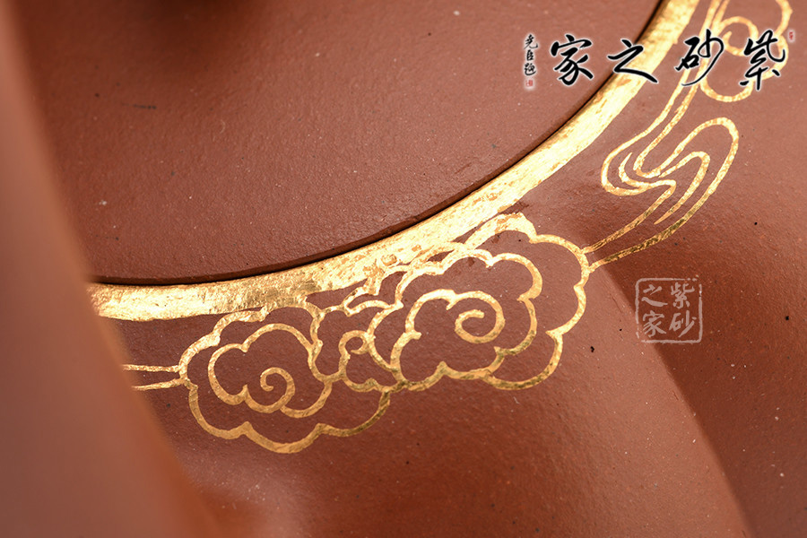 “時來運轉(zhuǎn)”集古雅靈動和自然趣味于一體,筋紋設(shè)計的壺身,飛揚形的壺把,祥瑞云團的壺鈕,創(chuàng)意鮮明,渾然天成。還有蓋面旁描金的云紋、流把處點綴的如意紋,整器完美呈現(xiàn)“時來運轉(zhuǎn)”的美好寓意。