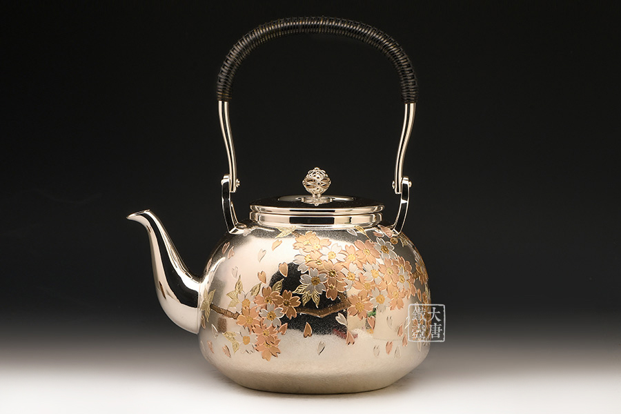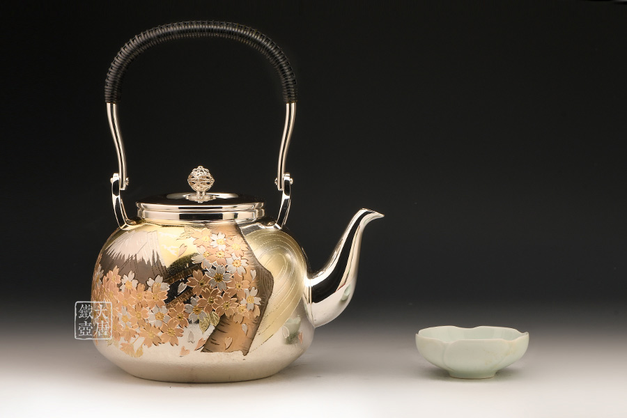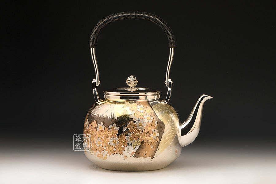 大淵銀器 純銀制 4.5寸富士櫻銀壺 [ 編號:78584 ]