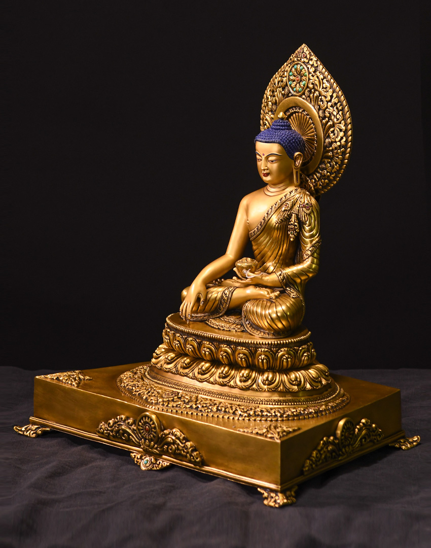 尼泊爾佛像也稱之為密宗佛像或藏傳佛像,尼泊爾佛像是以紫銅為胎體,黃金為外衣,純手工打造的銅鎏金佛像,使用泥金進行開臉,異常殊勝所以尼泊爾佛像價格比國內機器佛像普遍要高一些!