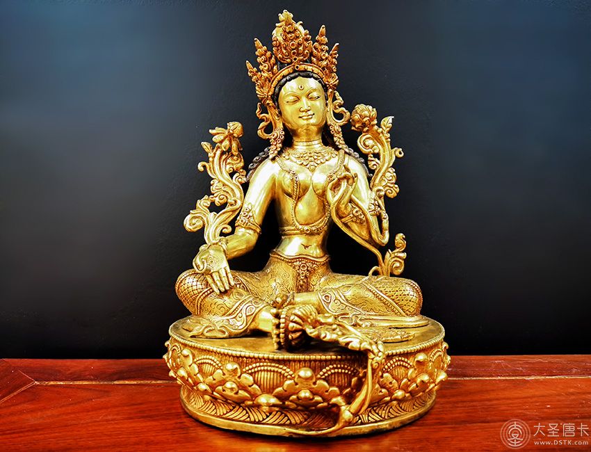 大圣唐卡商城 >> 作品詳情 >> 綠度母鎏金極品33cm