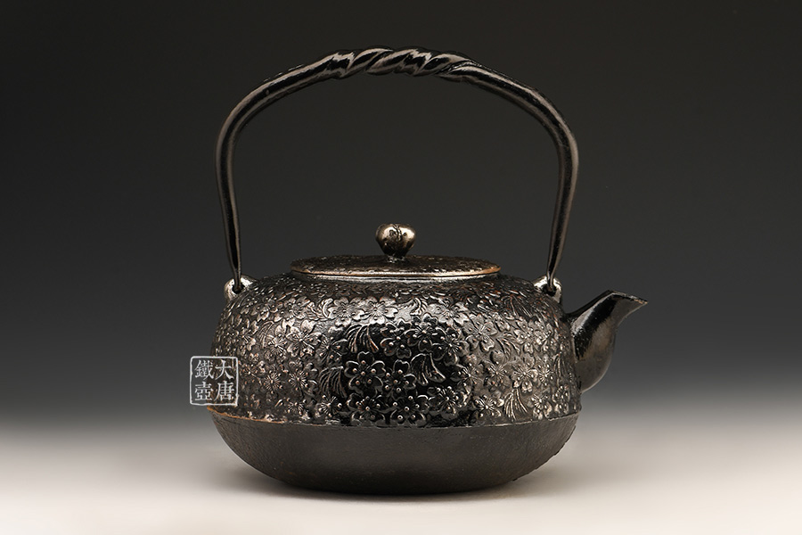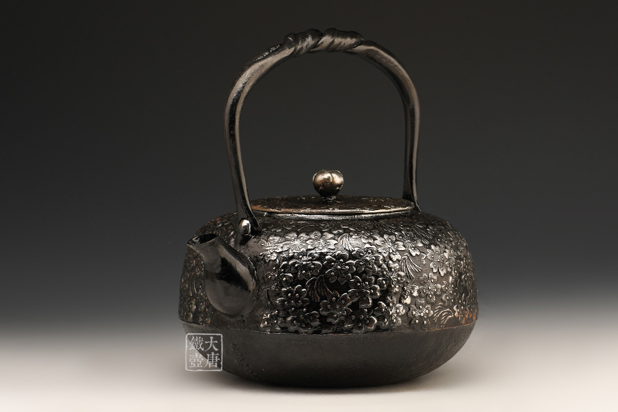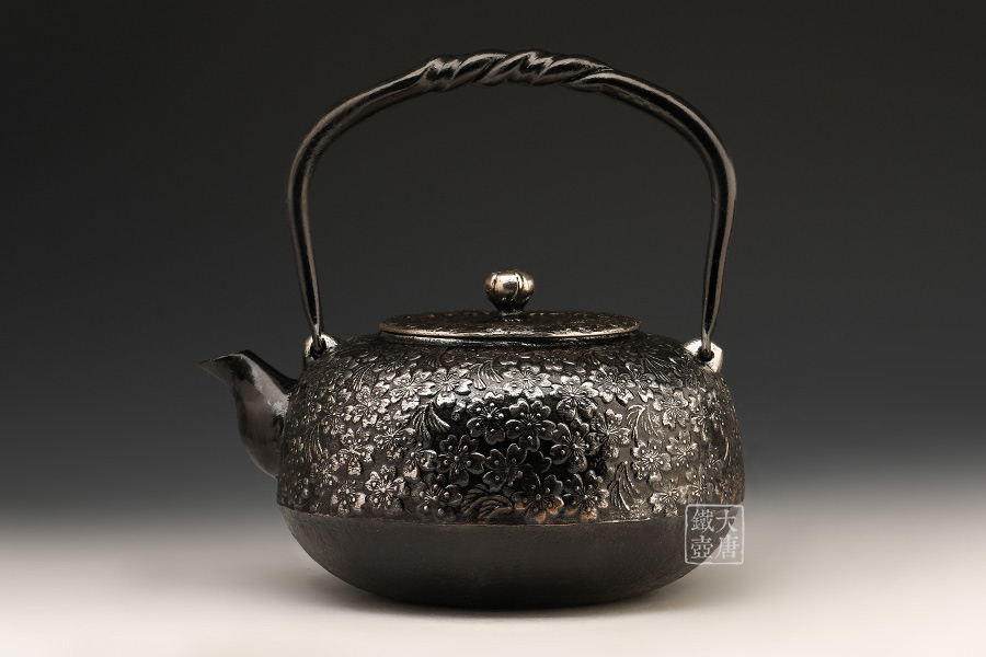 秀山堂佐藤勝弘作櫻花紋砂鐵壺