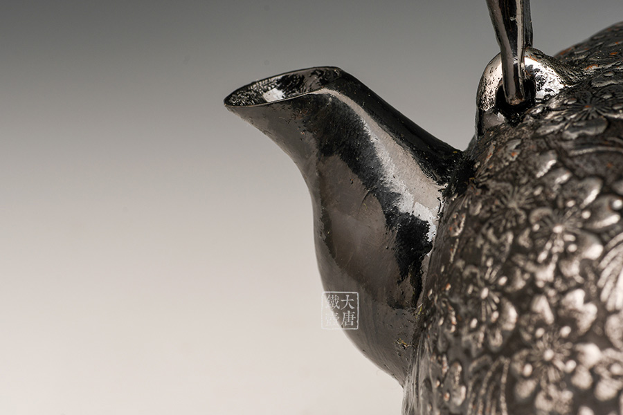 南部是鐵瓶的發(fā)祥地,御釜屋三代仁左衛(wèi)門將“手取釜”改造成鐵瓶,并固定了這種形式。所以從南部鐵瓶中可以明顯地看到茶釜的樣子。南部鐵器的追求古奧深沉的特點,大多以黑色來裝飾鐵瓶的表面,以期達成如長期受炭火熏燎的樣子。