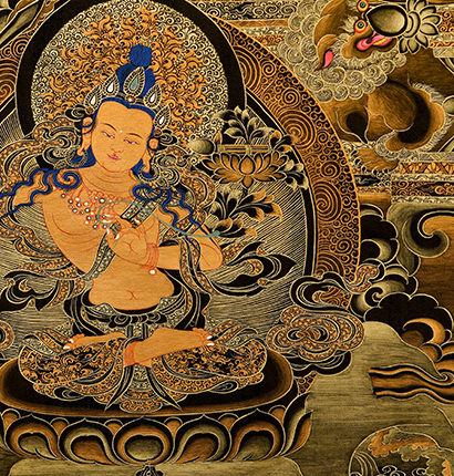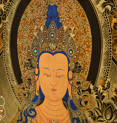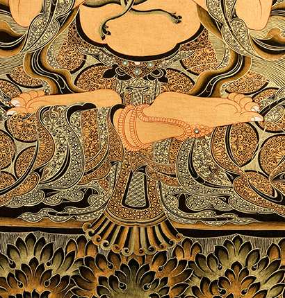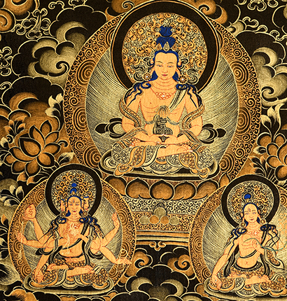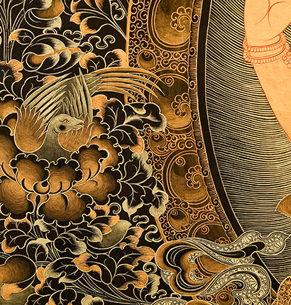 | 唐卡是歷史的瑰寶,現已被例入國家非物質文化遺產名錄,得到了高度的重視和保護。同時由于顏料的珍稀、繪制周期長、工藝復雜大大增強了其珍藏價值。一幅好的作品可遇不可求,近年來唐卡已成為收藏界炙手可熱的藏品。 | 唐卡的形式便于攜帶,其內容體現了藏傳佛教的莊重、神圣、華貴,被稱為“移動的佛像”。同時也是修行者積累善業,追尋心靈的平靜與安寧的一個過程。 | 唐卡的內容包羅萬象,它以圖像的方式承載著藏族文化精髓,是藏族智慧的結晶,廣泛傳播了藏地的文化、歷史和宗教理論。 | 唐卡絢麗的色彩、流暢的線條、嚴謹的結構,都充滿著濃郁的高原和游牧民族風情,無疑是難得的藝術珍品。值得一提的是唐卡繪制顏料全部為天然礦物顏料,畫面效果艷麗,可以保存千年而不變色。 |