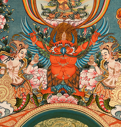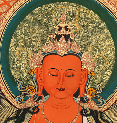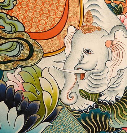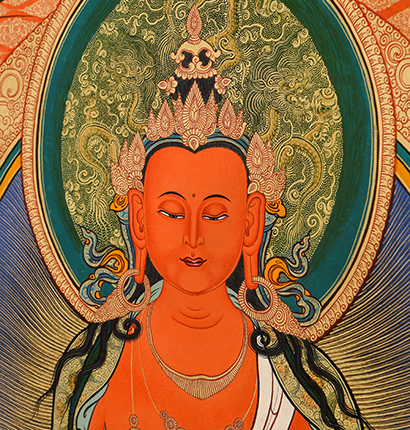 | 唐卡是歷史的瑰寶,現已被例入國家非物質文化遺產名錄,得到了高度的重視和保護。同時由于顏料的珍稀、繪制周期長、工藝復雜大大增強了其珍藏價值。一幅好的作品可遇不可求,近年來唐卡已成為收藏界炙手可熱的藏品。 | 唐卡的形式便于攜帶,其內容體現了藏傳佛教的莊重、神圣、華貴,被稱為“移動的佛像”。同時也是修行者積累善業,追尋心靈的平靜與安寧的一個過程。 | 唐卡的內容包羅萬象,它以圖像的方式承載著藏族文化精髓,是藏族智慧的結晶,廣泛傳播了藏地的文化、歷史和宗教理論。 | 唐卡絢麗的色彩、流暢的線條、嚴謹的結構,都充滿著濃郁的高原和游牧民族風情,無疑是難得的藝術珍品。值得一提的是唐卡繪制顏料全部為天然礦物顏料,畫面效果艷麗,可以保存千年而不變色。 |