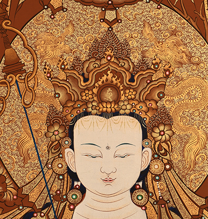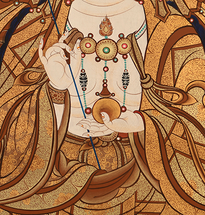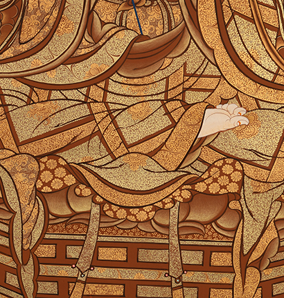 | 唐卡是歷史的瑰寶,現已被例入國家非物質文化遺產名錄,得到了高度的重視和保護。同時由于顏料的珍稀、繪制周期長、工藝復雜大大增強了其珍藏價值。一幅好的作品可遇不可求,近年來唐卡已成為收藏界炙手可熱的藏品。 | 唐卡的形式便于攜帶,其內容體現了藏傳佛教的莊重、神圣、華貴,被稱為“移動的佛像”。同時也是修行者積累善業,追尋心靈的平靜與安寧的一個過程。 | 唐卡的內容包羅萬象,它以圖像的方式承載著藏族文化精髓,是藏族智慧的結晶,廣泛傳播了藏地的文化、歷史和宗教理論。 | 唐卡絢麗的色彩、流暢的線條、嚴謹的結構,都充滿著濃郁的高原和游牧民族風情,無疑是難得的藝術珍品。值得一提的是唐卡繪制顏料全部為天然礦物顏料,畫面效果艷麗,可以保存千年而不變色。 |