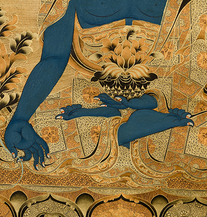 | 唐卡是歷史的瑰寶,現已被例入國家非物質文化遺產名錄,得到了高度的重視和保護。同時由于顏料的珍稀、繪制周期長、工藝復雜大大增強了其珍藏價值。一幅好的作品可遇不可求,近年來唐卡已成為收藏界炙手可熱的藏品。 | 唐卡的形式便于攜帶,其內容體現了藏傳佛教的莊重、神圣、華貴,被稱為“移動的佛像”。同時也是修行者積累善業,追尋心靈的平靜與安寧的一個過程。 | 唐卡的內容包羅萬象,它以圖像的方式承載著藏族文化精髓,是藏族智慧的結晶,廣泛傳播了藏地的文化、歷史和宗教理論。 | 唐卡絢麗的色彩、流暢的線條、嚴謹的結構,都充滿著濃郁的高原和游牧民族風情,無疑是難得的藝術珍品。值得一提的是唐卡繪制顏料全部為天然礦物顏料,畫面效果艷麗,可以保存千年而不變色。 |