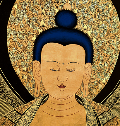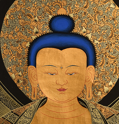 | 唐卡“師傅”開臉,筆路穩重流暢。體現完美天人相,可見佛菩薩慈眉善目,賦予唐卡畫像生的靈氣。 | 細節決定品質,點睛之筆不到位影響整體美觀,五官比例不協調,面目呆板,缺乏靈氣。 |
