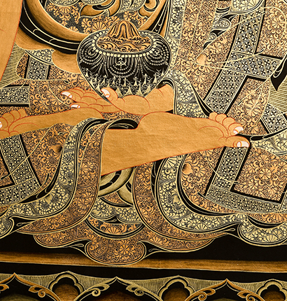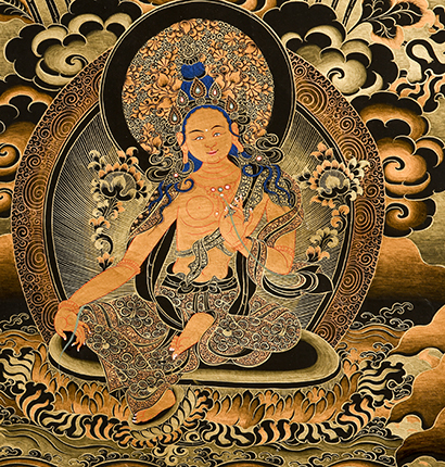 | 唐卡是歷史的瑰寶,現已被例入國家非物質文化遺產名錄,得到了高度的重視和保護。同時由于顏料的珍稀、繪制周期長、工藝復雜大大增強了其珍藏價值。一幅好的作品可遇不可求,近年來唐卡已成為收藏界炙手可熱的藏品。 | 唐卡的形式便于攜帶,其內容體現了藏傳佛教的莊重、神圣、華貴,被稱為“移動的佛像”。同時也是修行者積累善業,追尋心靈的平靜與安寧的一個過程。 | 唐卡的內容包羅萬象,它以圖像的方式承載著藏族文化精髓,是藏族智慧的結晶,廣泛傳播了藏地的文化、歷史和宗教理論。 | 唐卡絢麗的色彩、流暢的線條、嚴謹的結構,都充滿著濃郁的高原和游牧民族風情,無疑是難得的藝術珍品。值得一提的是唐卡繪制顏料全部為天然礦物顏料,畫面效果艷麗,可以保存千年而不變色。 |