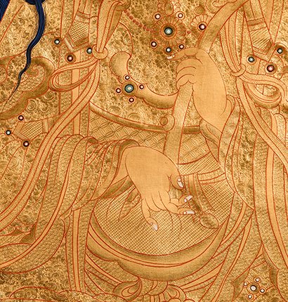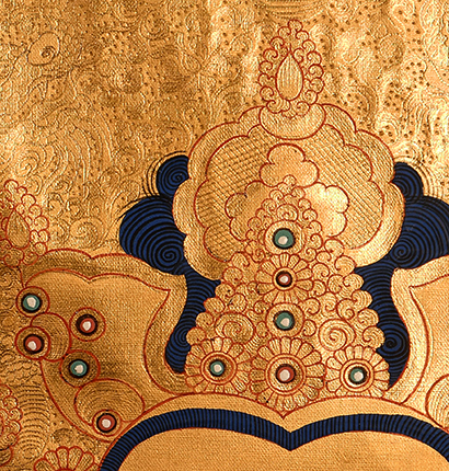 | 唐卡是歷史的瑰寶,現已被例入國家非物質文化遺產名錄,得到了高度的重視和保護。同時由于顏料的珍稀、繪制周期長、工藝復雜大大增強了其珍藏價值。一幅好的作品可遇不可求,近年來唐卡已成為收藏界炙手可熱的藏品。 | 唐卡的形式便于攜帶,其內容體現了藏傳佛教的莊重、神圣、華貴,被稱為“移動的佛像”。同時也是修行者積累善業,追尋心靈的平靜與安寧的一個過程。 | 唐卡的內容包羅萬象,它以圖像的方式承載著藏族文化精髓,是藏族智慧的結晶,廣泛傳播了藏地的文化、歷史和宗教理論。 | 唐卡絢麗的色彩、流暢的線條、嚴謹的結構,都充滿著濃郁的高原和游牧民族風情,無疑是難得的藝術珍品。值得一提的是唐卡繪制顏料全部為天然礦物顏料,畫面效果艷麗,可以保存千年而不變色。 |
