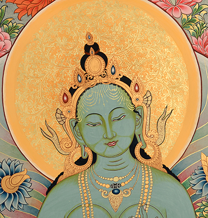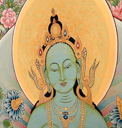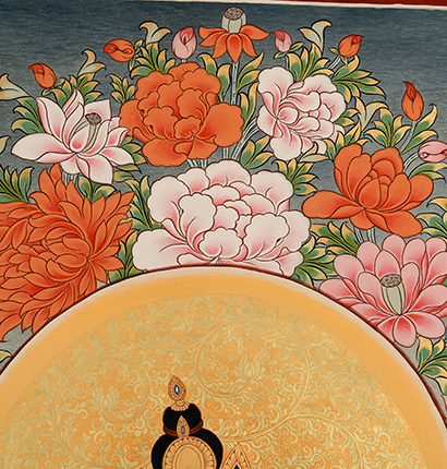 | 唐卡是歷史的瑰寶,現已被例入國家非物質文化遺產名錄,得到了高度的重視和保護。同時由于顏料的珍稀、繪制周期長、工藝復雜大大增強了其珍藏價值。一幅好的作品可遇不可求,近年來唐卡已成為收藏界炙手可熱的藏品。 | 唐卡的形式便于攜帶,其內容體現了藏傳佛教的莊重、神圣、華貴,被稱為“移動的佛像”。同時也是修行者積累善業,追尋心靈的平靜與安寧的一個過程。 | 唐卡的內容包羅萬象,它以圖像的方式承載著藏族文化精髓,是藏族智慧的結晶,廣泛傳播了藏地的文化、歷史和宗教理論。 | 唐卡絢麗的色彩、流暢的線條、嚴謹的結構,都充滿著濃郁的高原和游牧民族風情,無疑是難得的藝術珍品。值得一提的是唐卡繪制顏料全部為天然礦物顏料,畫面效果艷麗,可以保存千年而不變色。 |