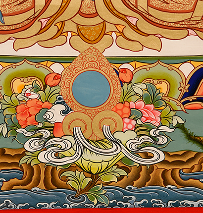 | 唐卡是歷史的瑰寶,現已被例入國家非物質文化遺產名錄,得到了高度的重視和保護。同時由于顏料的珍稀、繪制周期長、工藝復雜大大增強了其珍藏價值。一幅好的作品可遇不可求,近年來唐卡已成為收藏界炙手可熱的藏品。 | 唐卡的形式便于攜帶,其內容體現了藏傳佛教的莊重、神圣、華貴,被稱為“移動的佛像”。同時也是修行者積累善業,追尋心靈的平靜與安寧的一個過程。 | 唐卡的內容包羅萬象,它以圖像的方式承載著藏族文化精髓,是藏族智慧的結晶,廣泛傳播了藏地的文化、歷史和宗教理論。 | 唐卡絢麗的色彩、流暢的線條、嚴謹的結構,都充滿著濃郁的高原和游牧民族風情,無疑是難得的藝術珍品。值得一提的是唐卡繪制顏料全部為天然礦物顏料,畫面效果艷麗,可以保存千年而不變色。 |