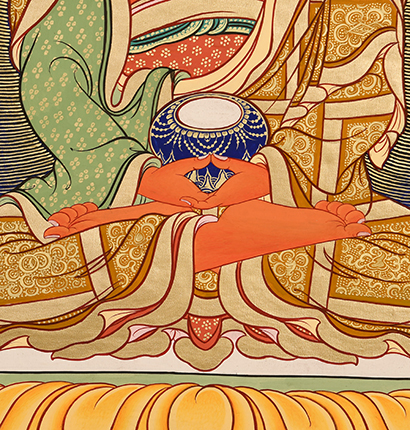 | 唐卡“師傅”開臉,筆路穩重流暢。體現完美天人相,可見佛菩薩慈眉善目,賦予唐卡畫像生的靈氣。 | 細節決定品質,點睛之筆不到位影響整體美觀,五官比例不協調,面目呆板,缺乏靈氣。 |