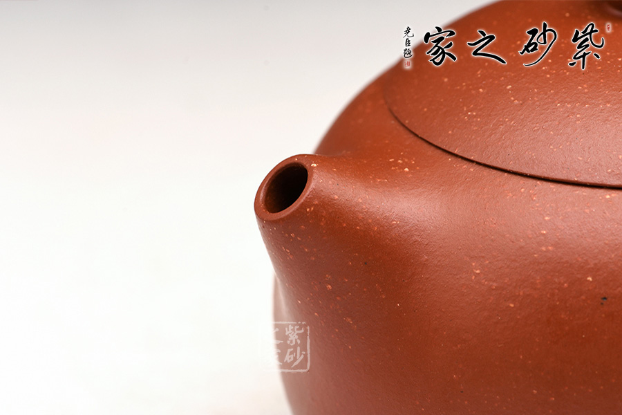 特點:原礦因含緞泥、紅泥、紫泥等諸多共生礦,陶之后,于深沉之“橙紅色”底上,滿佈五彩斑斕的粗細(xì)、深淺之紅、黃星斑點。