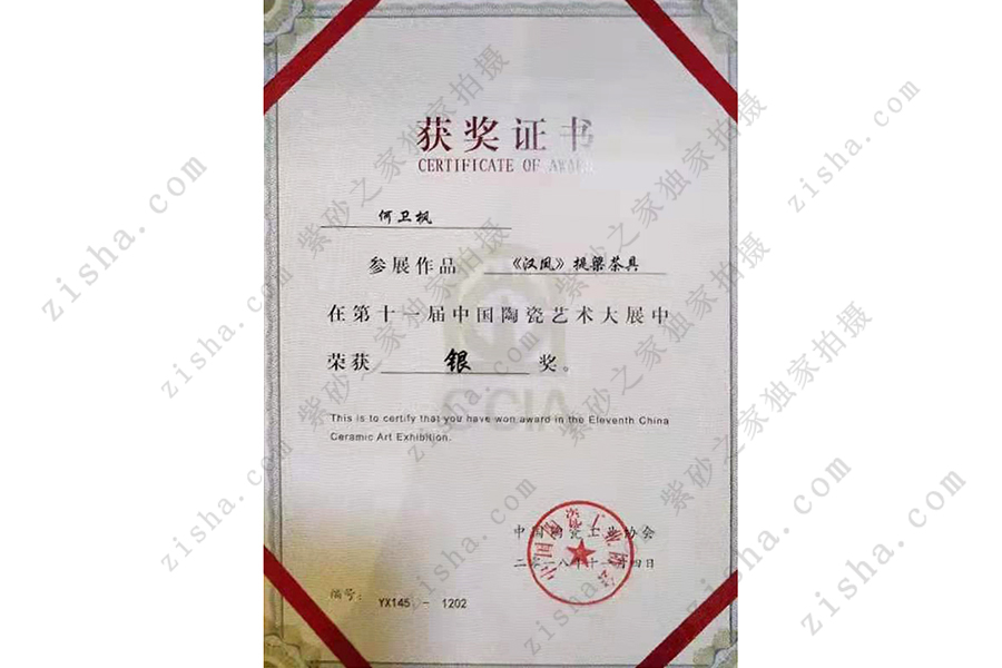 2011年《大雪華壺》獲第二屆廣州紫砂*陶瓷藝術(shù)文化節(jié)“紫陶杯”評(píng)比大賽金獎(jiǎng)。