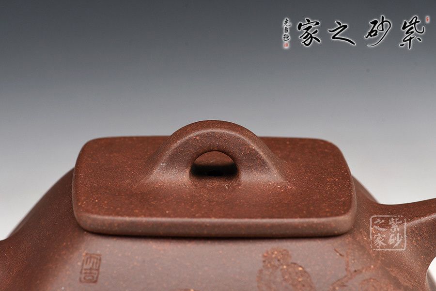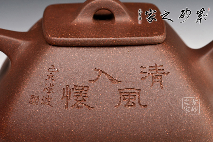 石瓢壺式乃曼生壺式之一,蘊(yùn)涵了人文意趣,但此作在圓器石瓢基礎(chǔ)上加以改制,使其四方型制,方中寓圓,制作難度更大。