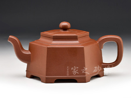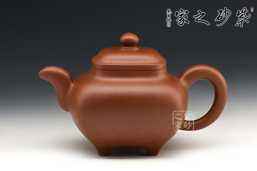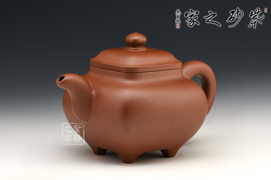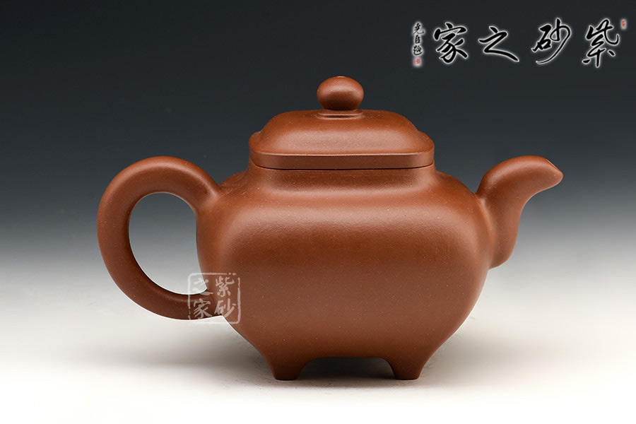 四方傳爐壺為清末創(chuàng)新品種,此壺式方中有圓,圓中寓方,要求比例恰當、珠圓玉潤,實屬不易。