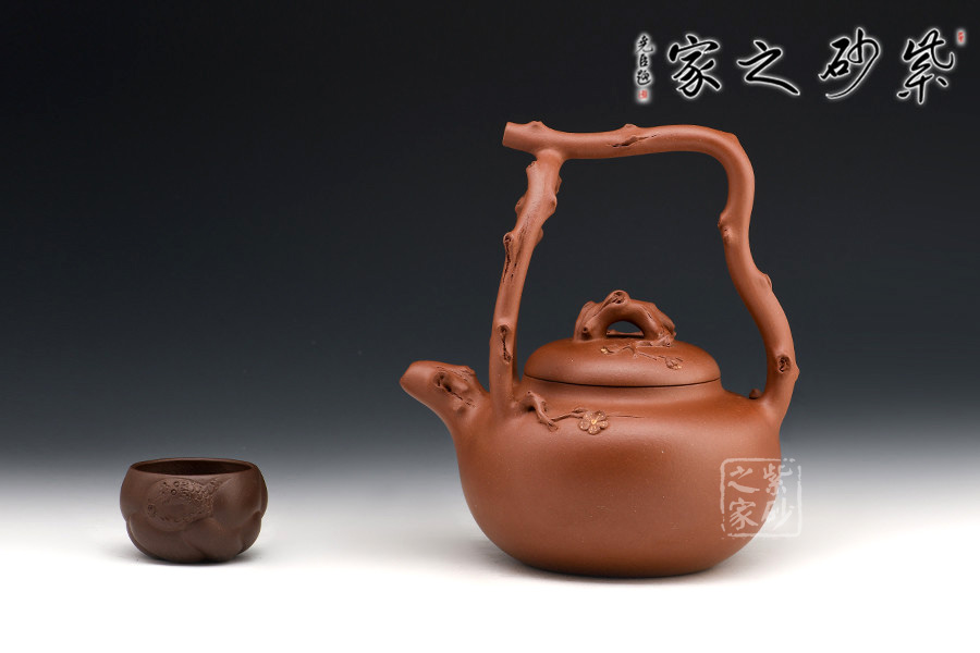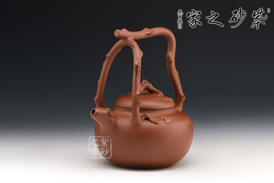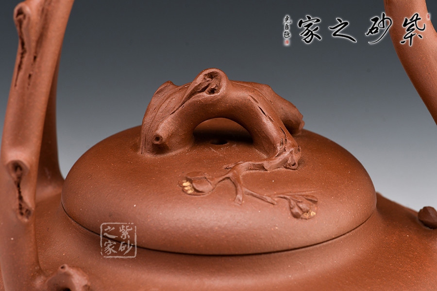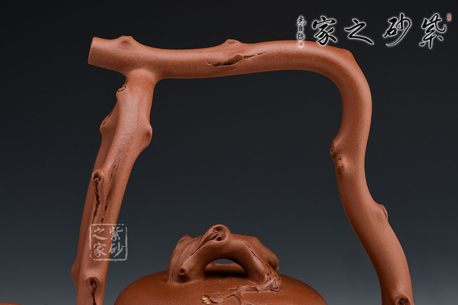 壺作東坡提梁式,以枝干三叉為提,取一截樹干做壺鈕,做工精湛,大氣磅礴。