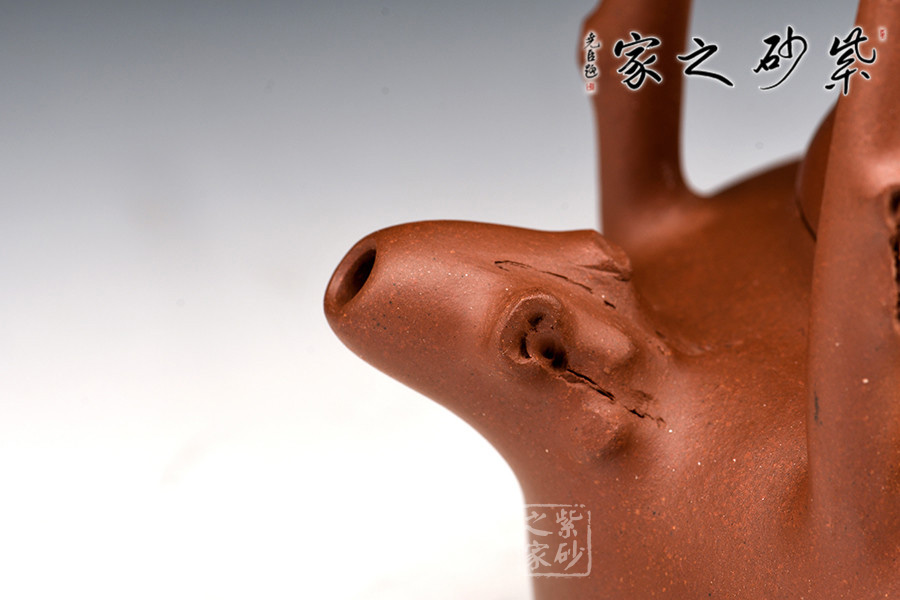 特點(diǎn):塊狀中有青綠色的"雞眼"、"貓眼"、色呈偏紫泛青,細(xì)而純正, 十分稀少.燒成的壺呈現(xiàn) 紅豬肝色,燒成顏色具體要看礦料的成分構(gòu)成和燒成溫度。
