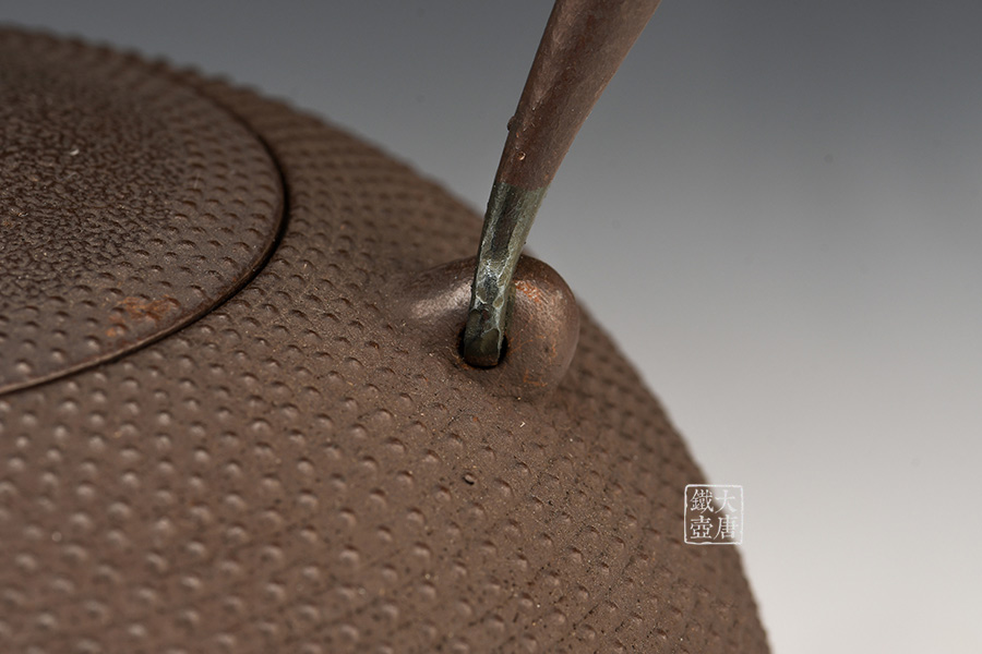 這款鐵壺整體以此為原型設計,配上了代代傳承的經(jīng)典霰紋,均勻分布的霰紋整體緊湊感強烈