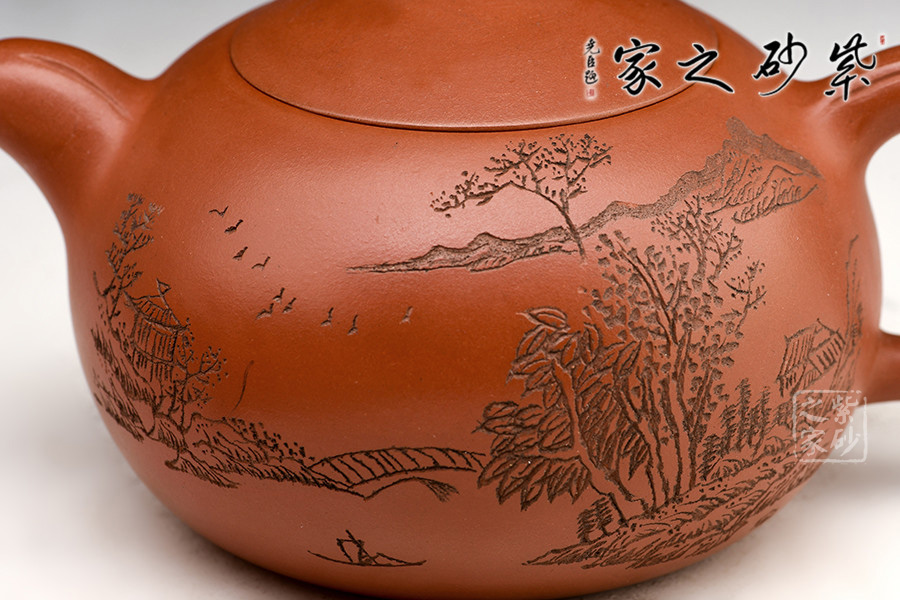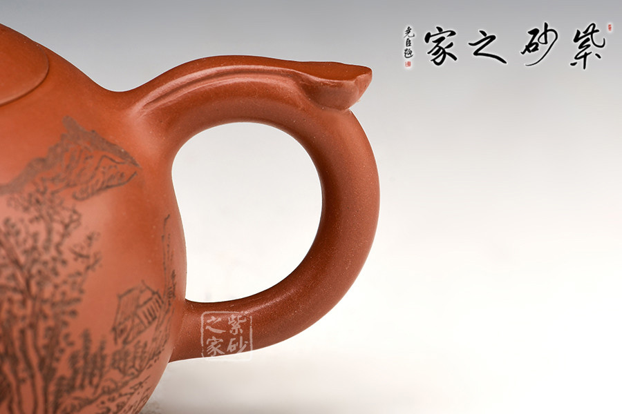 特點:質(zhì)感綿密、緊實細緻,持之扎實沉重、紅潤豔麗,泥中極品,無以倫比;泥胚含少許原礦顆粒,沖淋熱水后色變極大,呈紅中帶紫,養(yǎng)壺易現(xiàn)“包漿”之美。
